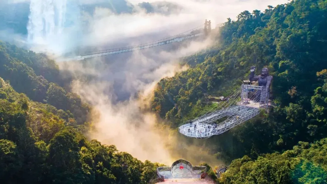 除此之外,景区的天门玻璃悬廊更是凭借世界最大的环形瀑布和独特的峡谷悬廊灯光秀创造了八项世界纪录,已成为远近闻名的网红打卡地,堪称广东玻璃廊桥的巅峰巨作。