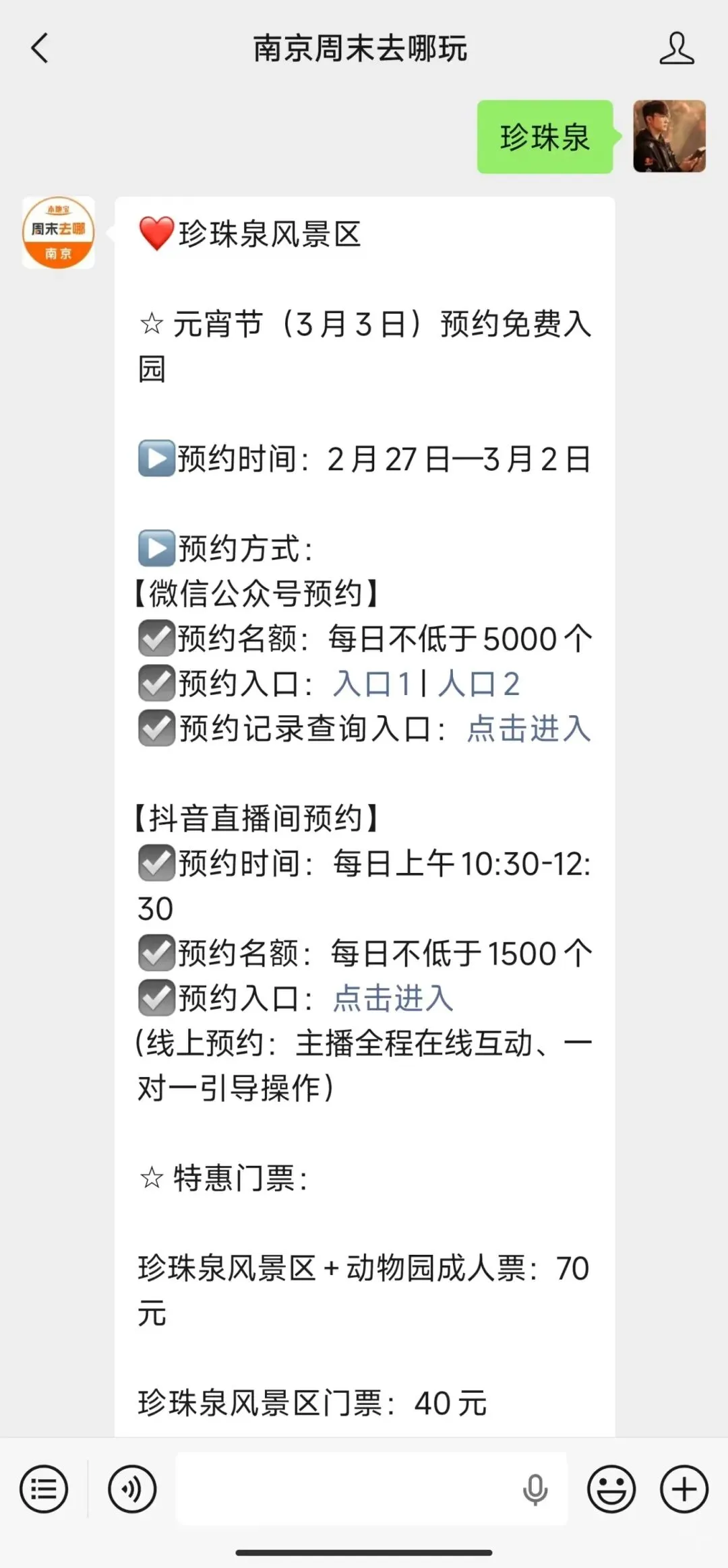 ✅小编提醒:扫描下方二维码,关注【南京周末去哪玩】公众号,私信回复【珍珠泉】也可获取免费预约入口