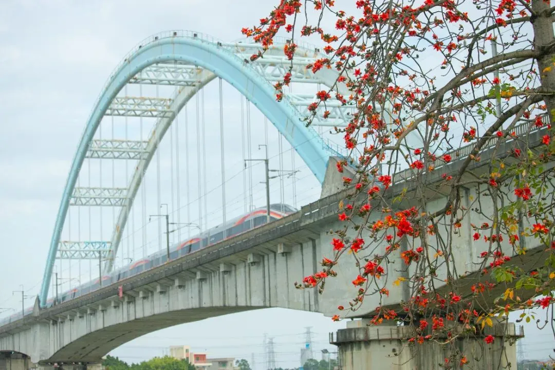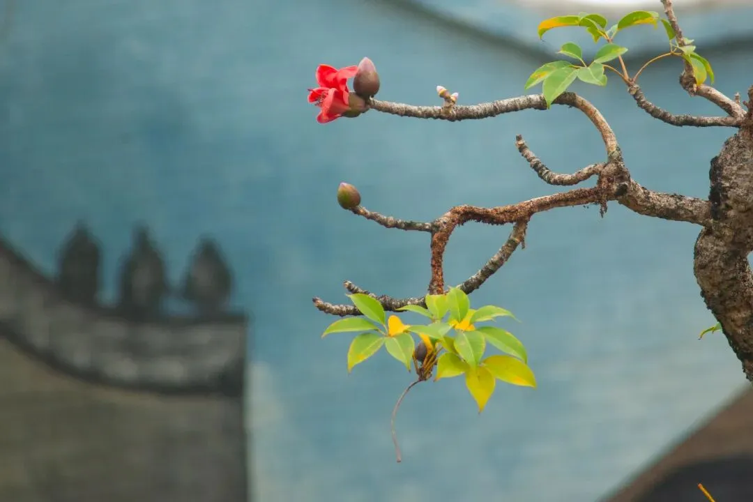 感受红棉配青砖黛瓦、琉璃窗等充满岭南风情的氛围感。