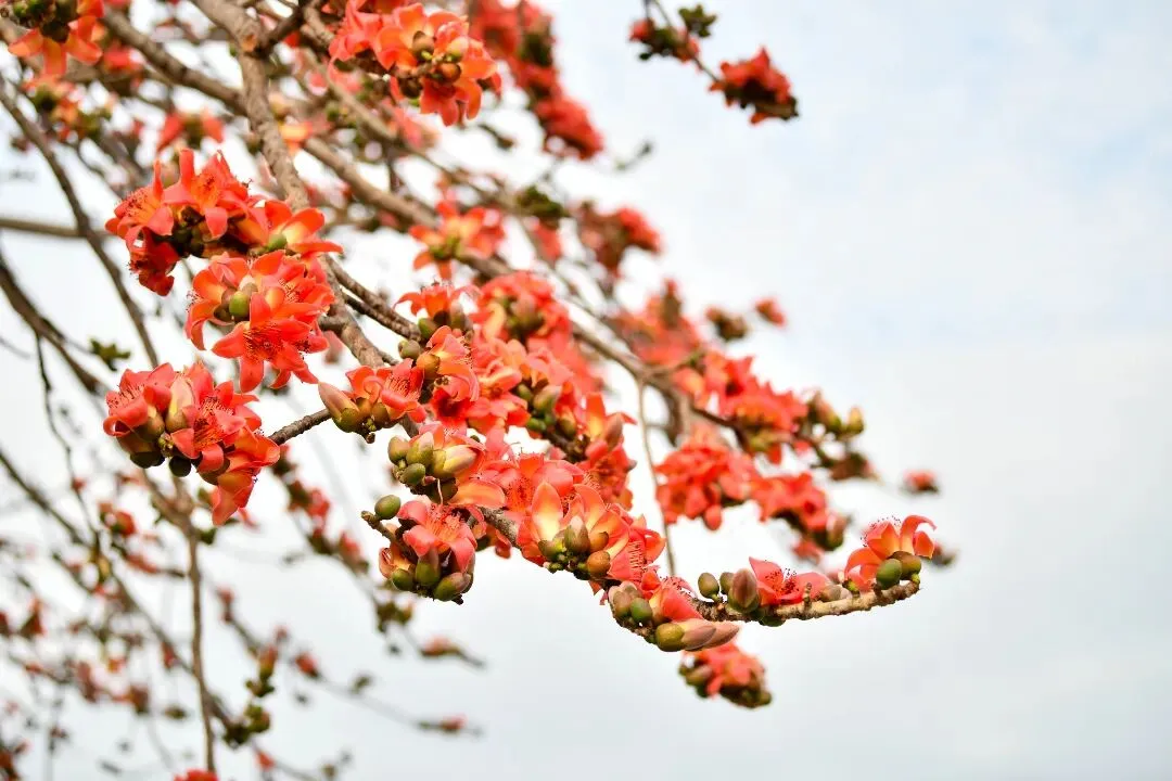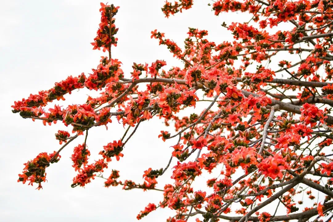 有的木棉高耸入云,有的探出墙头,随手一拍都是朋友圈爆款。