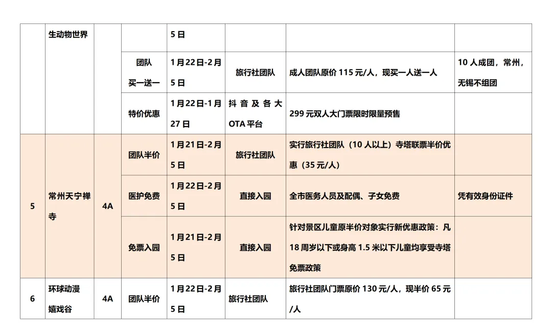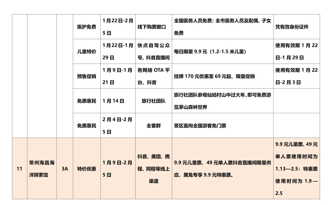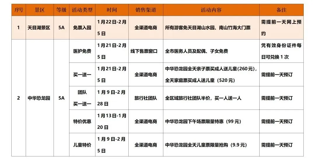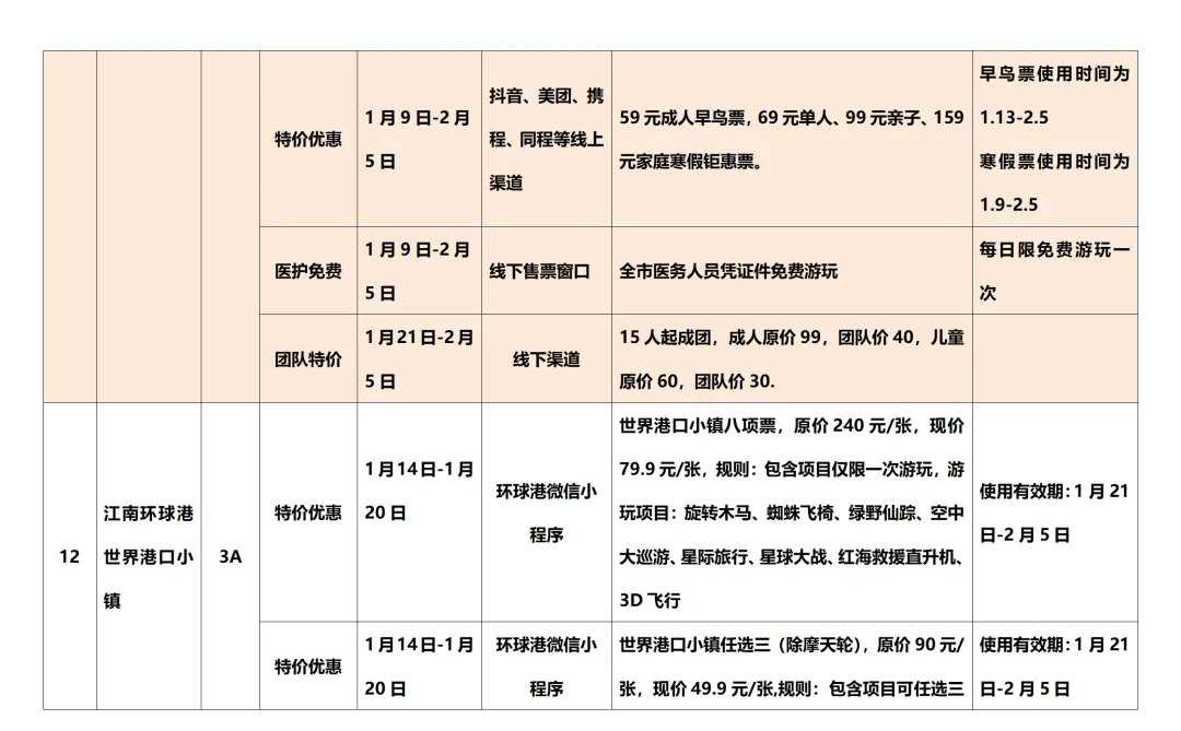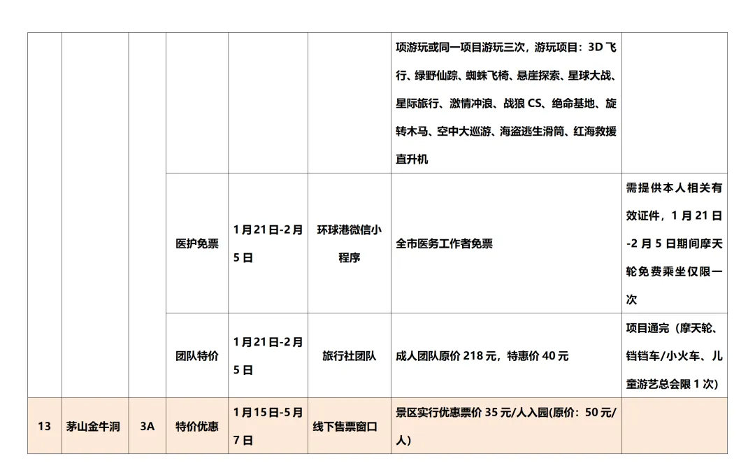 春节期间(1月22日-2月5日),全市A级旅游景区对团队游客实行门票半价,对本市医务工作者实行免门票。
