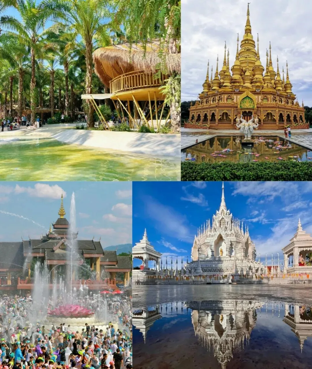 白天逛傣式建筑集群,咖啡馆露台晒太阳看大金塔 ☕;傍晚六国水上市场淘手工艺品。