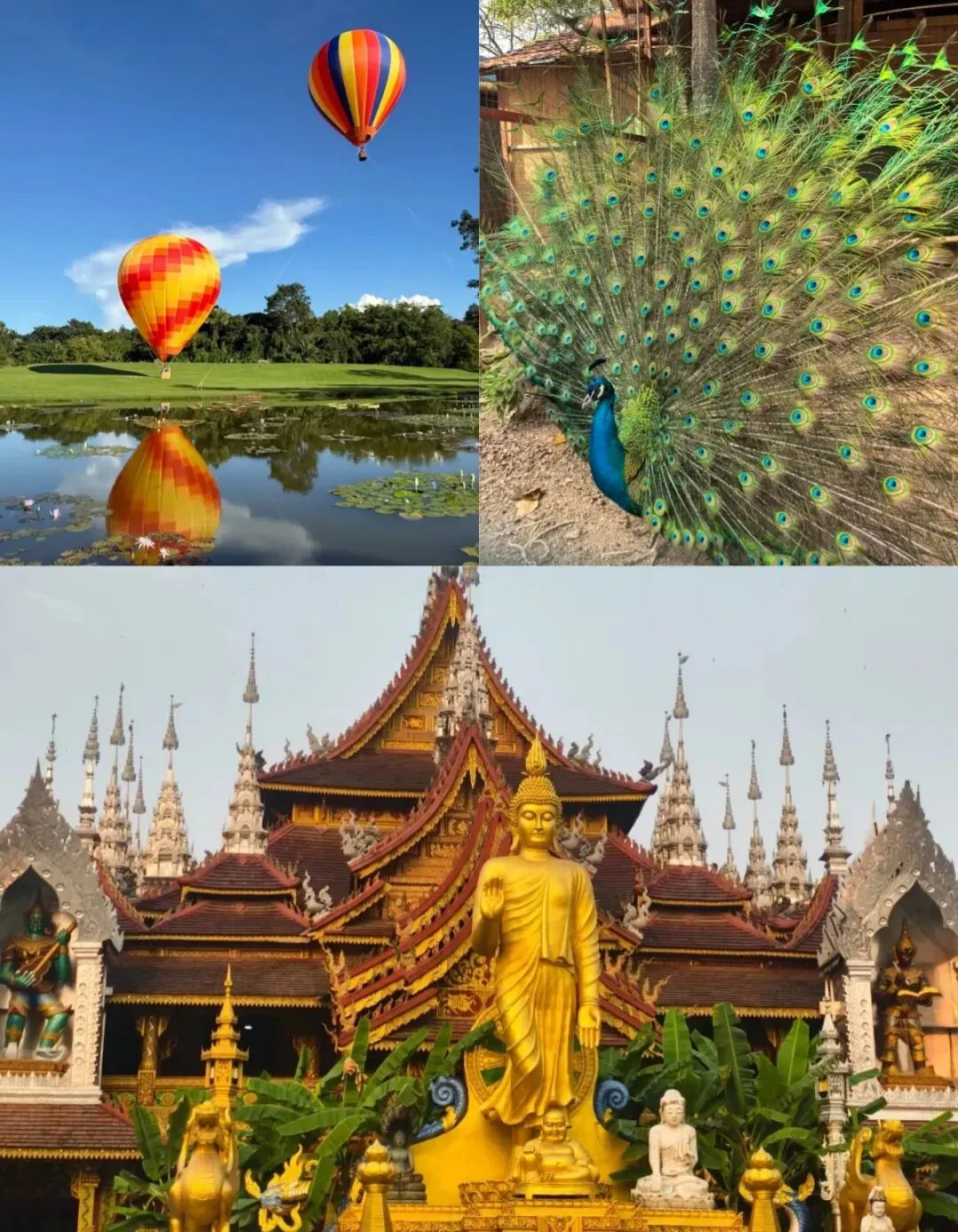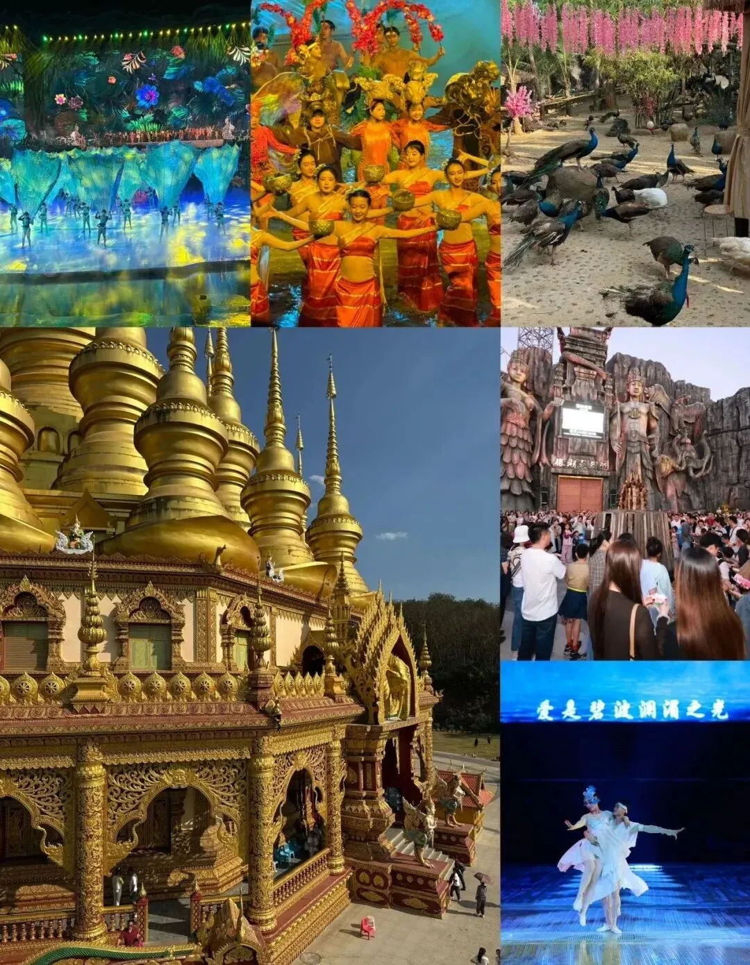 乘观光车登顶俯瞰景洪全城 🌇;孔雀放飞表演搭配金顶佛塔,出片率 100%!