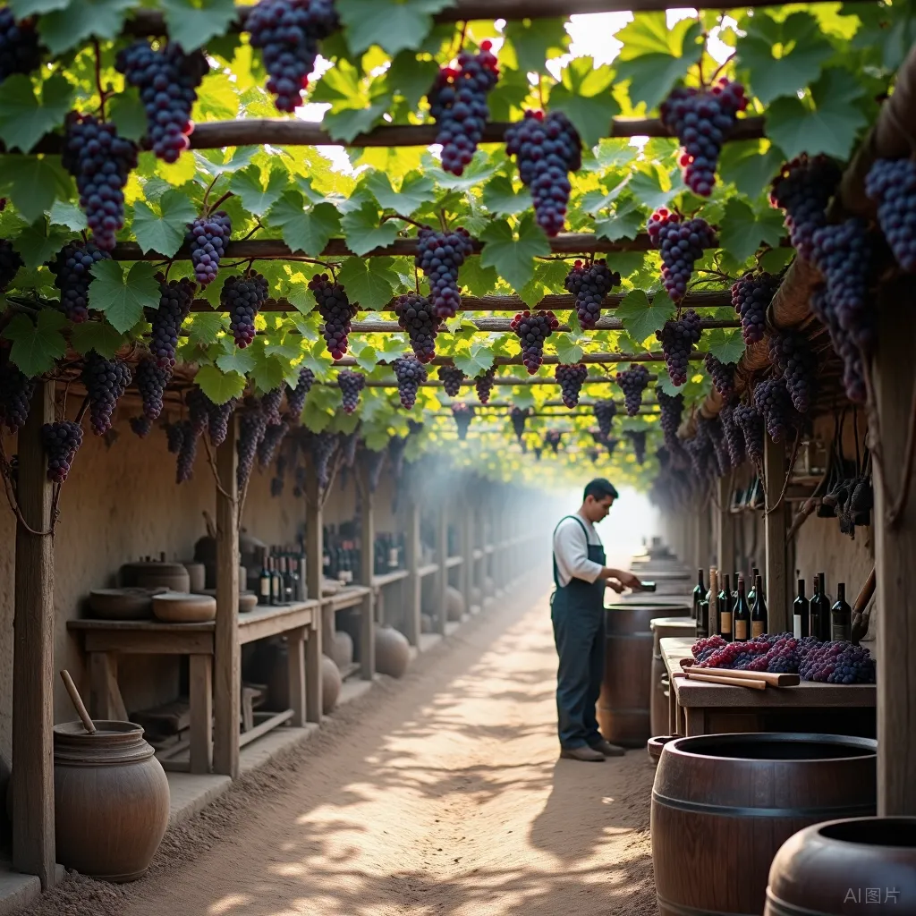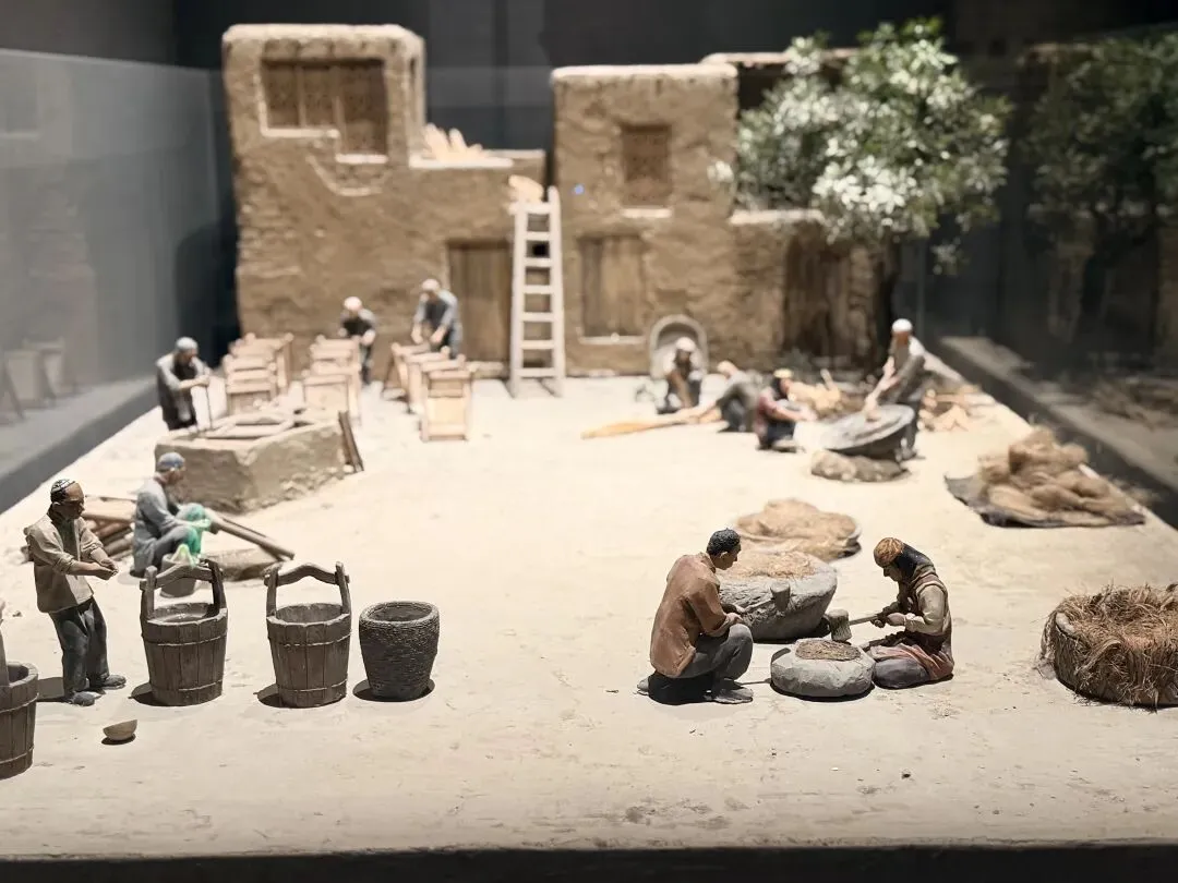 葡萄种植酿造技艺、模戳印花布、土陶烧制、纳孜库姆舞蹈、柳编,丝路绿洲非遗活态展示。葡萄藤下,土陶匠人专注塑形,每一件作品都藏着绿洲的烟火气息。