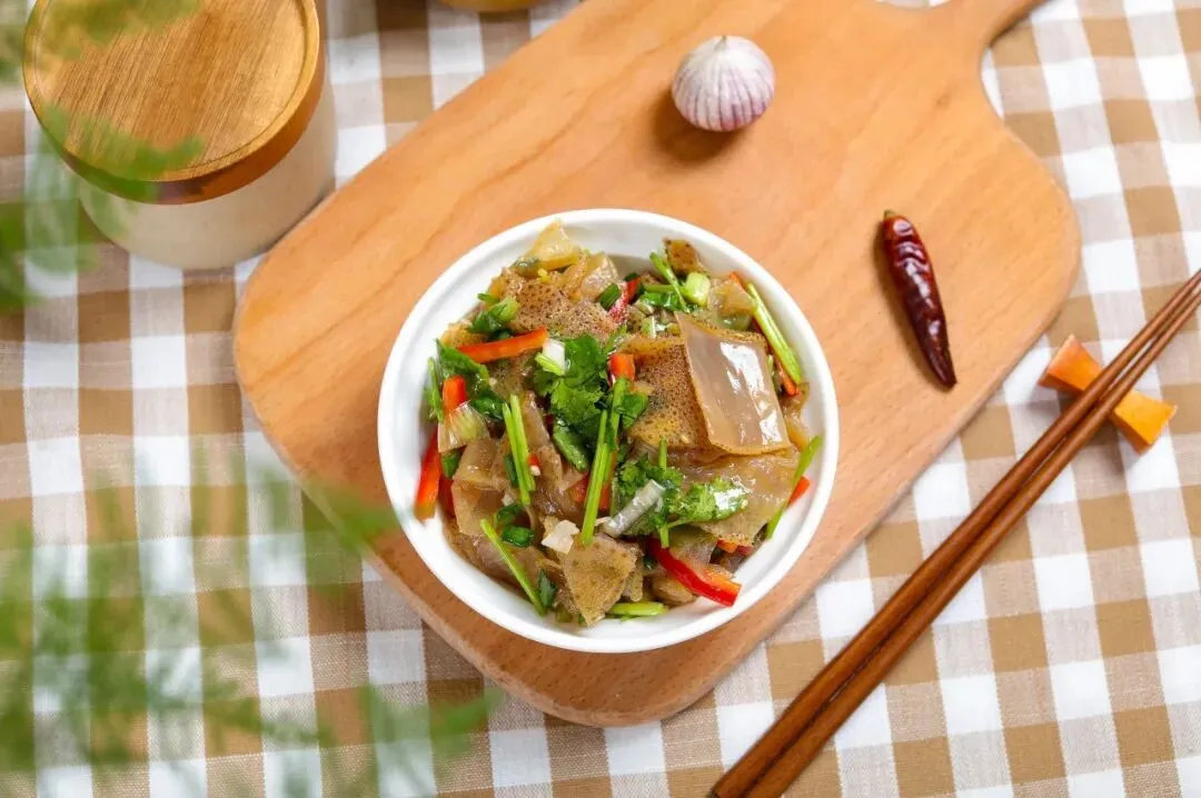 8. 海蜇皮:新鲜海蜇处理后凉拌,爽脆可口,搭配蒜末、醋和香油,解腻开胃,是夏季海岛餐桌上的必备凉菜。
