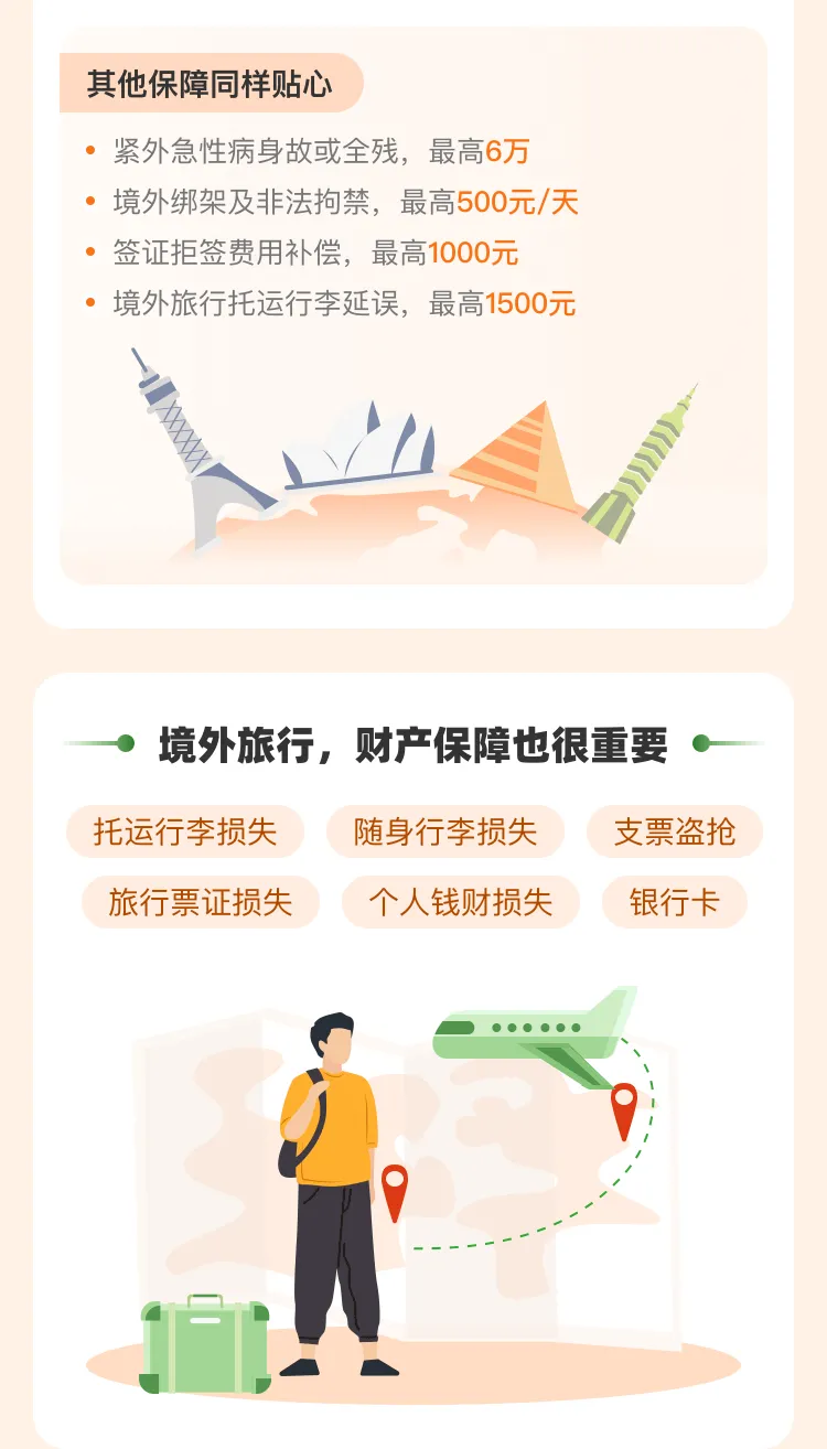 境外旅游意外险(全球版):保0-85岁,支持从境外出发,含拒签保障,个人财务保障、高额医疗,保障全球.