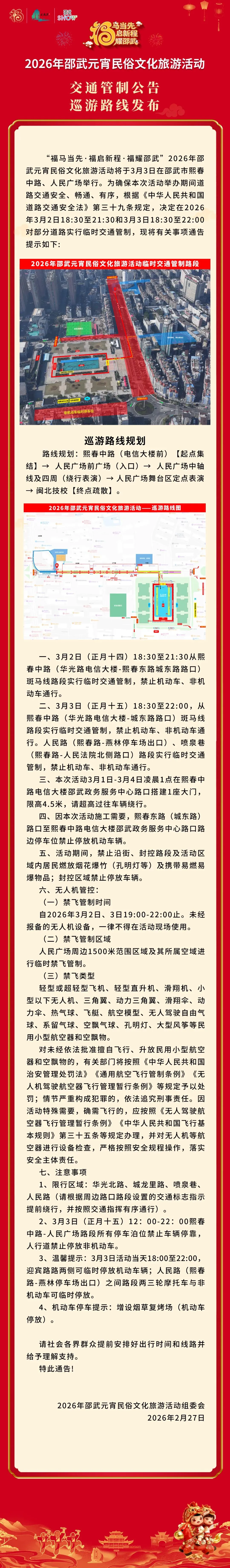 【2026年邵武元宵民俗文化旅游活动交通管制公告及巡游路线发布】铁城每日热点2.28