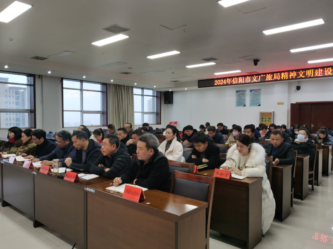 2月20日,信阳市文化广电和旅游局召开2024年度精神文明建设工作会议,深入学习贯彻全市改进创新精神文明建设工作培训会议精神,回顾总结2023年精神文明建设工作,安排部署2024年工作,动员局系统全体干部职工再接再厉,不断开创精神文明建设工作新局面。局党组书记、局长任俊出席会议并讲话,局领导班子成员,局直各单位班子成员,局机关全体人员参加会议。会议由局党组成员、副局长滕小玉主持。