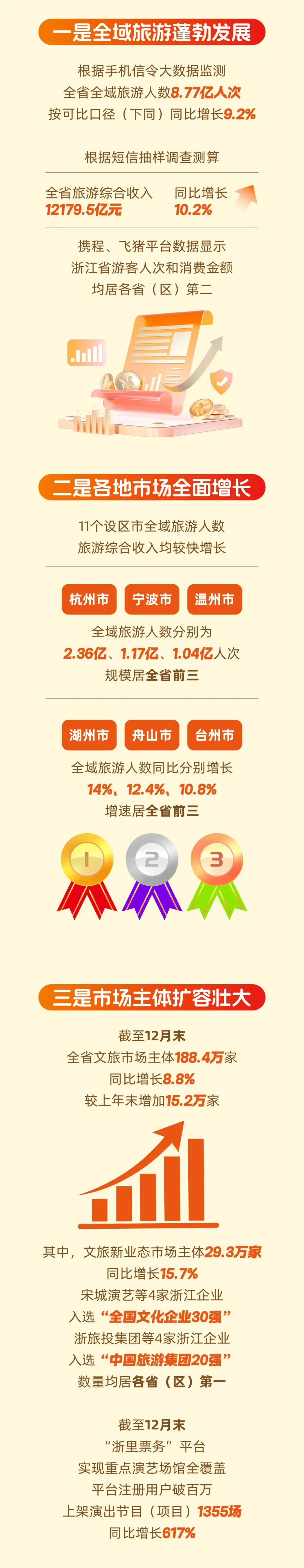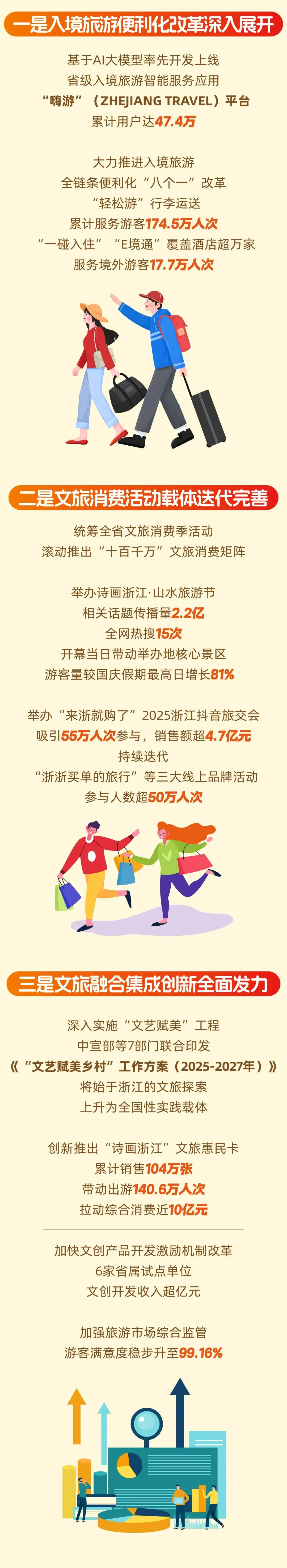 2025年,浙江省围绕建设高水平旅游强省,大力实施文旅深度融合工程,创新完善现代旅游业体系,推动旅游经济向新向优发展。