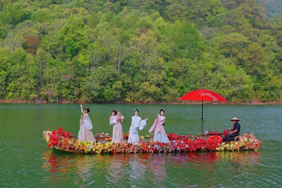 花船轻摇,美人如玉 在水上花船上 你将欣赏到一场唯美的表演 仿佛穿越了时空 回到了那个诗意盎然的年代