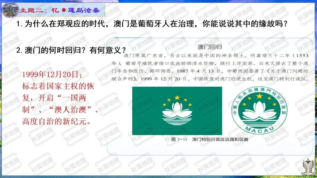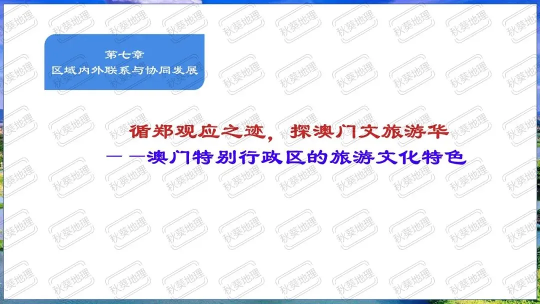 八下《7.2澳门特别行政区的旅游文化特色》 新湘教版(2024版)原创教学设计+同步课件