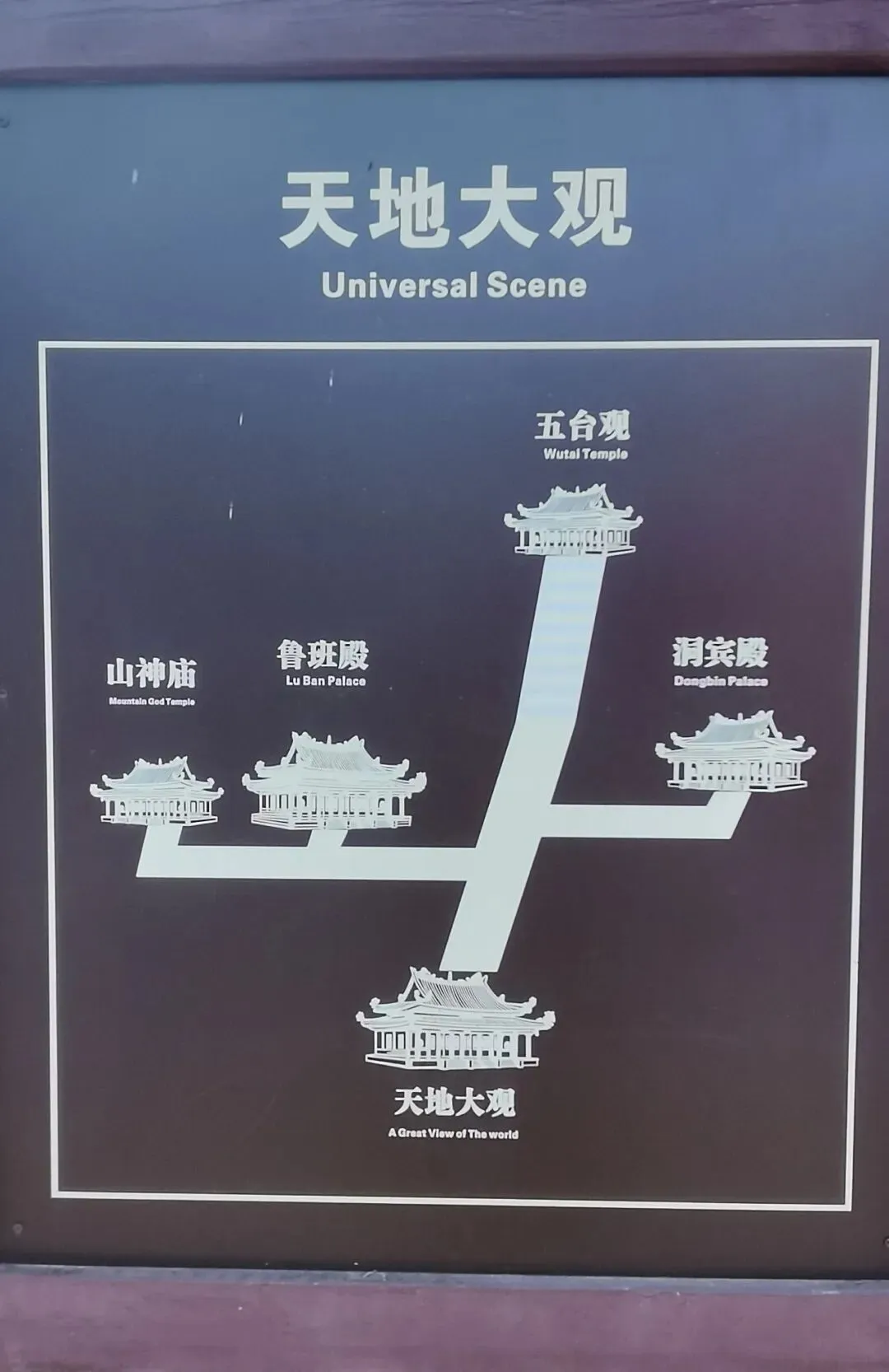 步入天地大观,此处殿宇密集,儒释道三教相融,鲁班殿、洞宾殿、山神庙依次排布,香火静穆。鲁班殿供奉着工匠祖师,殿内梁枋斗拱的精巧构造本身就是对匠心的最好诠释。洞宾殿里,八仙之一吕洞宾的传说在此流传。