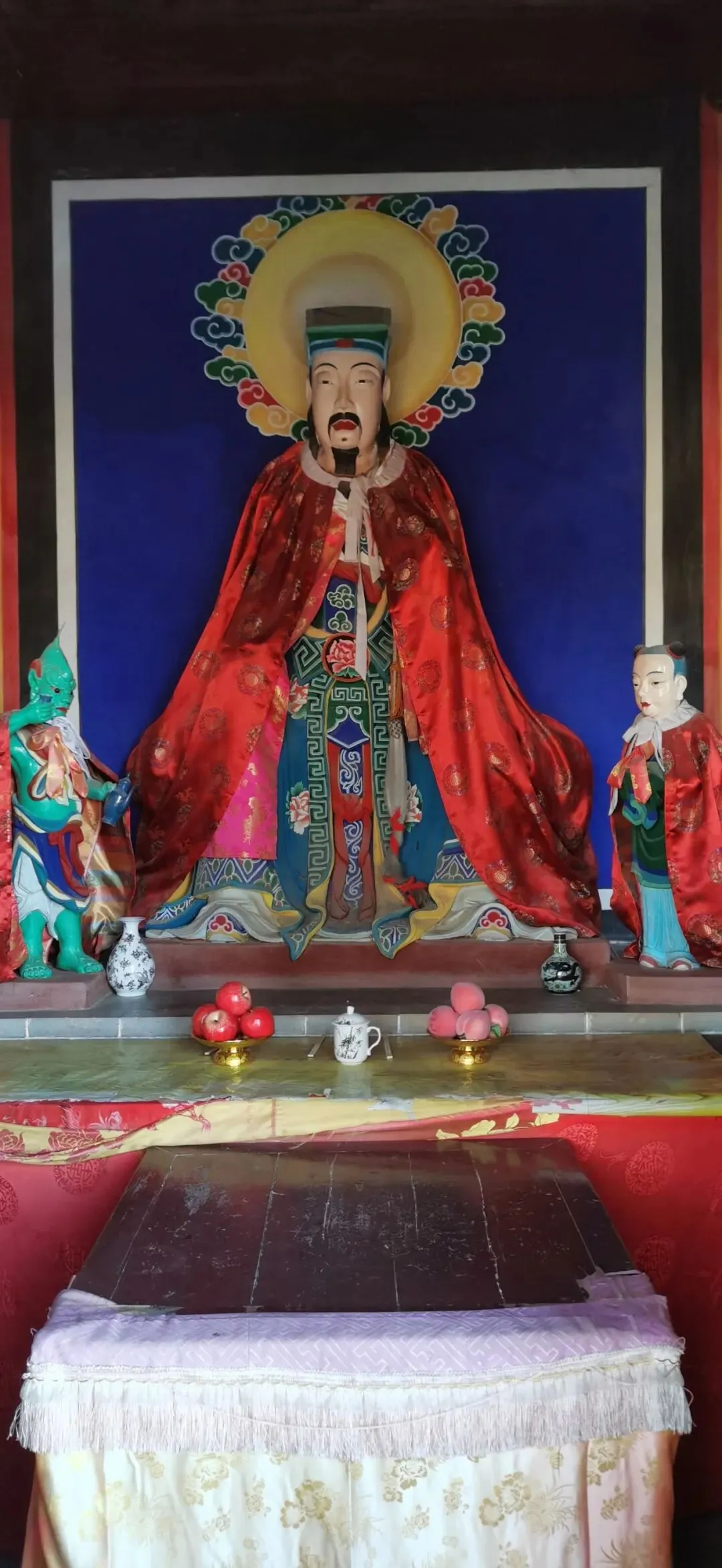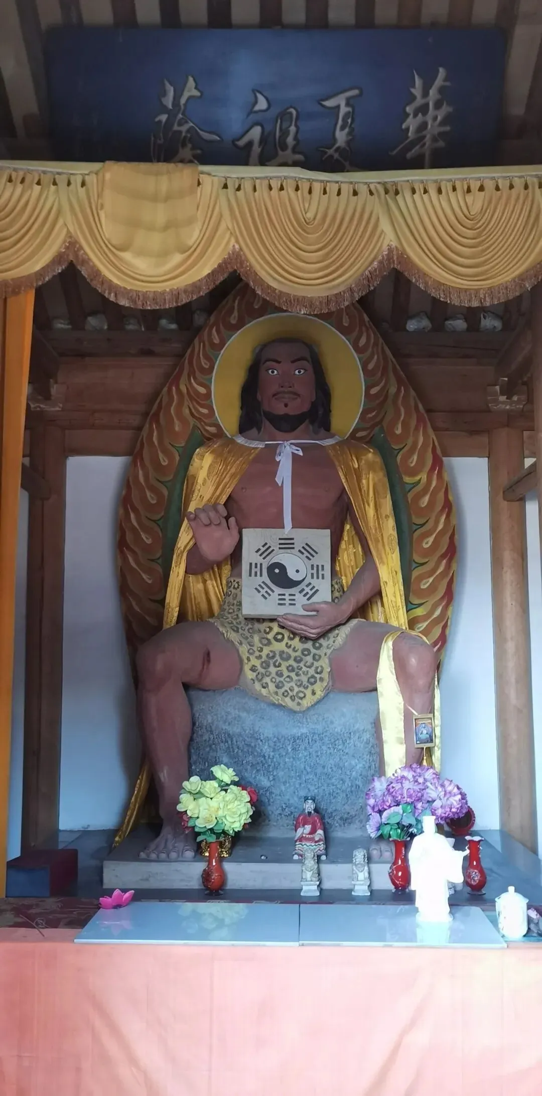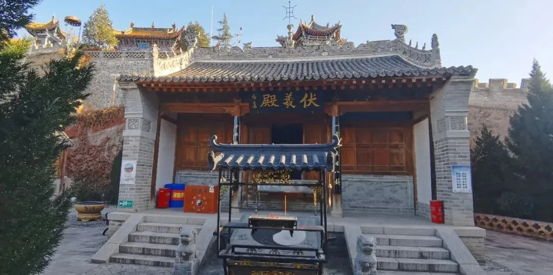 继续登高,接引阁、三法宫、玉皇殿、三清殿、伏羲殿次第展开,殿宇庄严,神像肃穆,尽显道家文化的深邃。伏羲殿尤为殊胜——秦安作为伏羲故里,对这位人文始祖的祭祀可追溯至先秦。殿内伏羲圣像手持八卦,目光深邃,似在凝望这片土地的过去与未来。