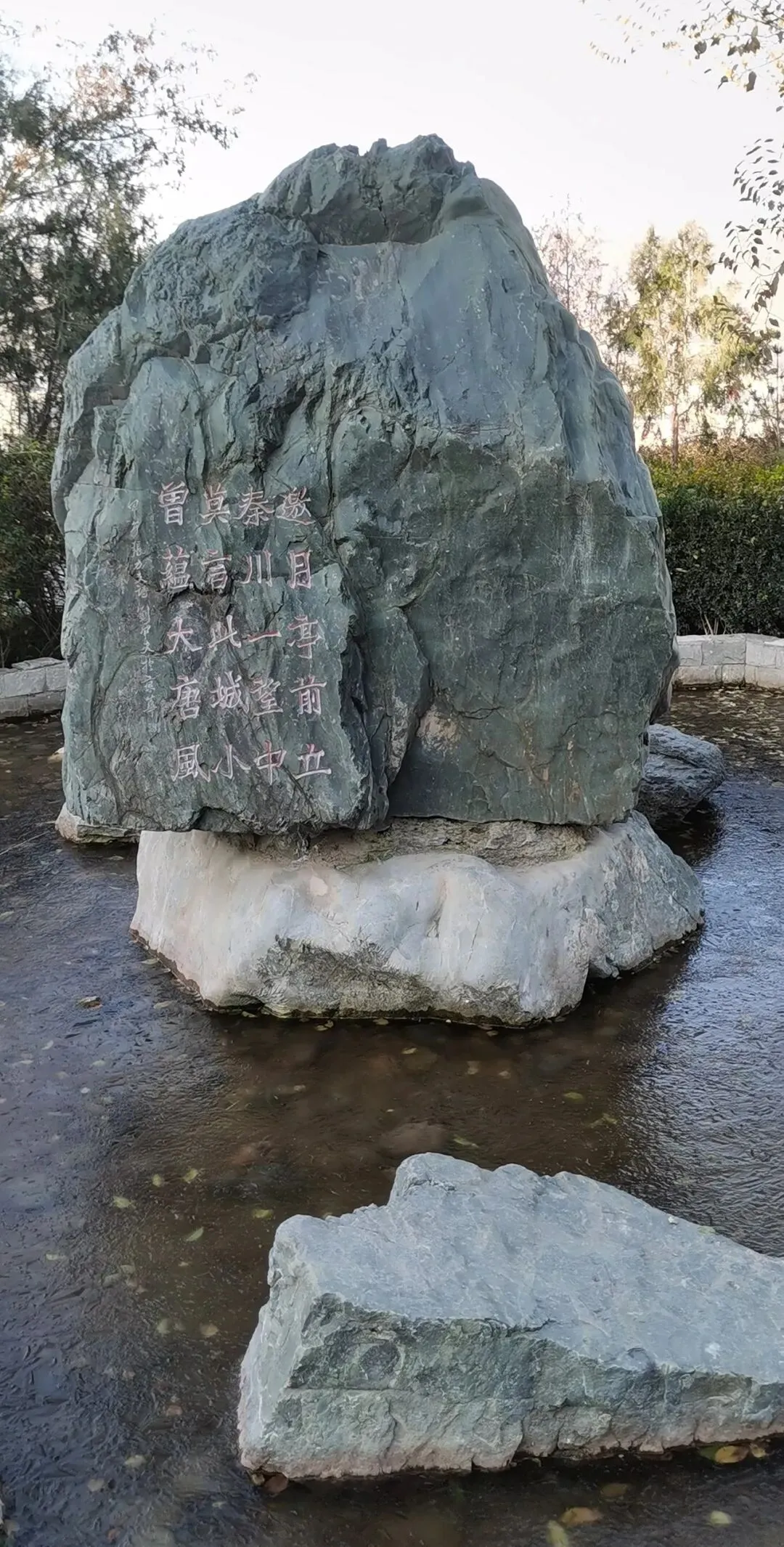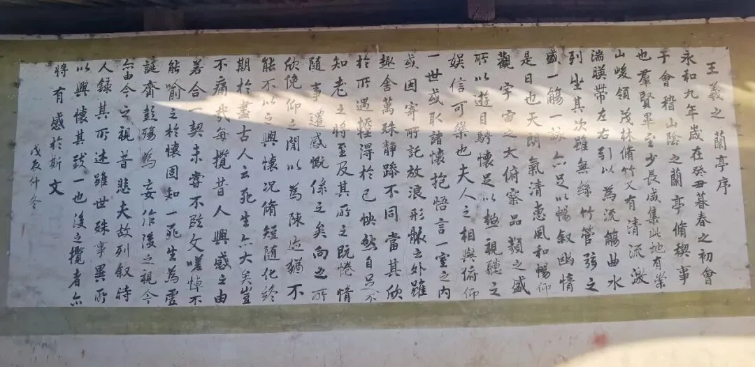 出天地大观,行至碑林。廊间碑刻林立,墨韵悠长,尤以王羲之《兰亭集序》碑刻最为醒目,笔法飘逸、气韵生动,漫步其间,如与先贤对话,感受中华书法的千年风骨。