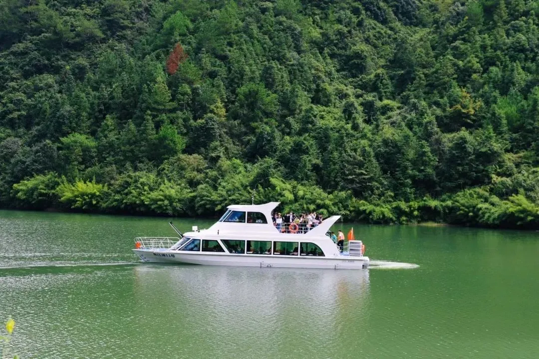 ▲船游东风湖,打卡“南方小三峡”,舟行碧波上,人在画中游;
