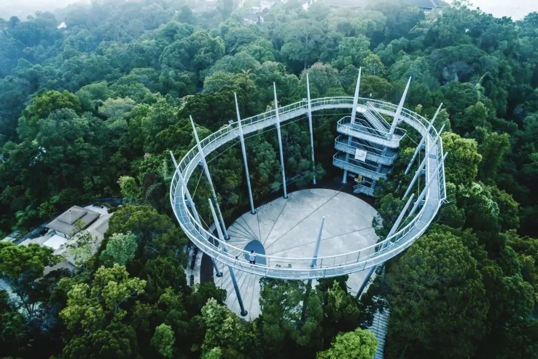 升旗山位于槟岛中部,主峰西方山海拔833米,是槟城的最高点。可以乘坐缆车/徒步抵达山顶,穿越繁茂的绿色森林,在360°全景空中观景台处远眺美景,恍若闯入宫崎骏童话世界。