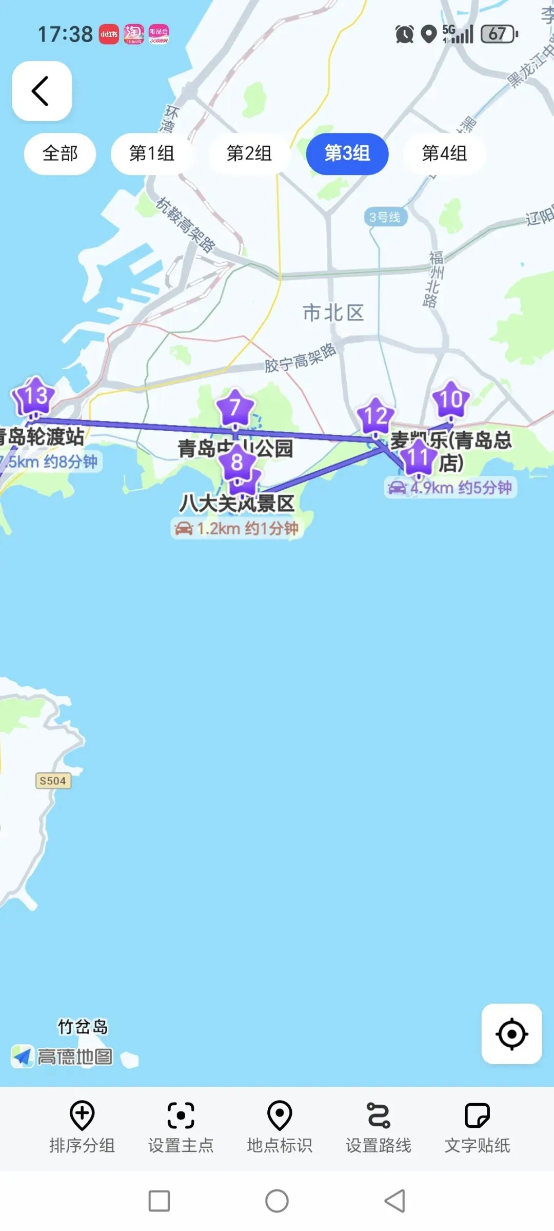※以下是我们青岛第3天的行程,上面还有景点之间的路程,可以考虑打车还是步行呀。