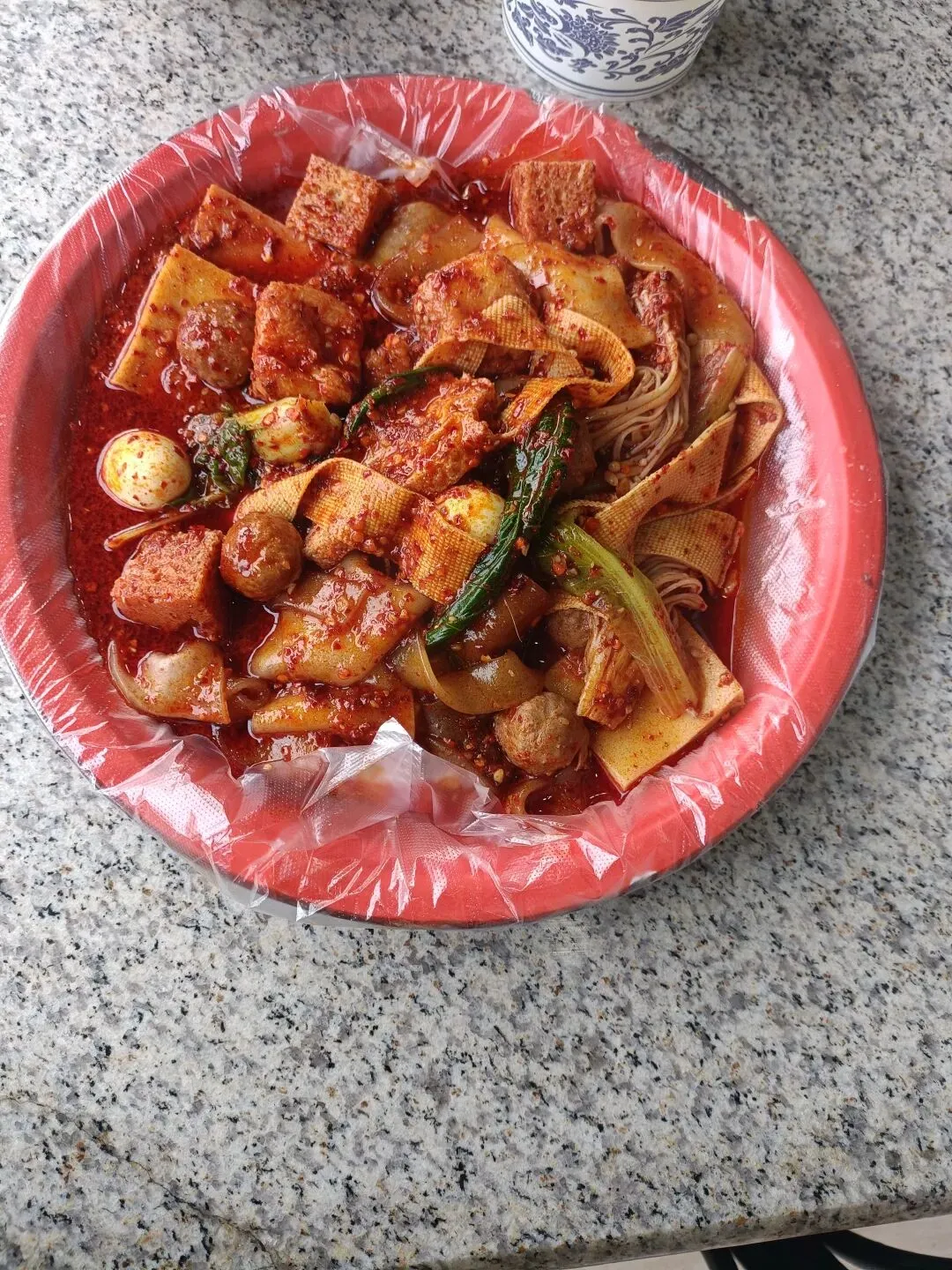 3.先坐地铁到古德寺,在附近吃了天水麻辣烫,一般,又尝了旁边的豆皮和洪湖藕汤,难吃。