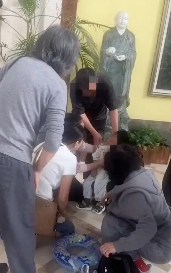 2月23日14时许, 正值春节长假, 经律论文化旅游小镇 正值客流高峰, 不少游客办理入住, 房务管理中心前厅副经理卢瑜玲 正在前台处理工作电话。 突然, 同事焦急呼喊: “有孩子卡住了,情况紧急!” 她立刻奔向现场。 只见一名约4岁男童瘫软在地, 脸色惨白、失去意识, 孩子家属在旁手足无措, 尝试施救却因 不懂正确方法未能起效。