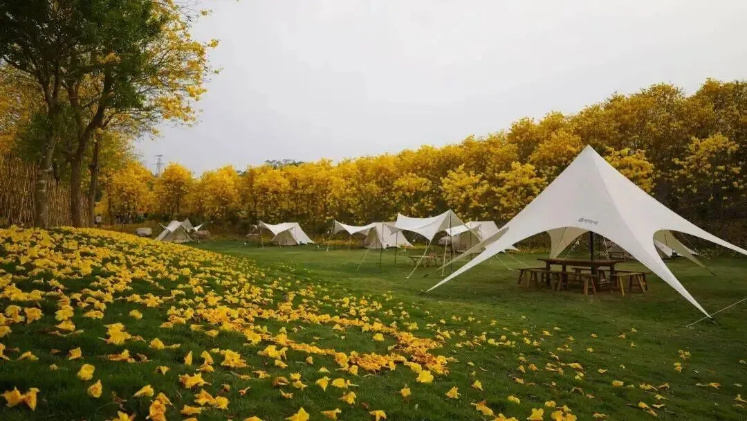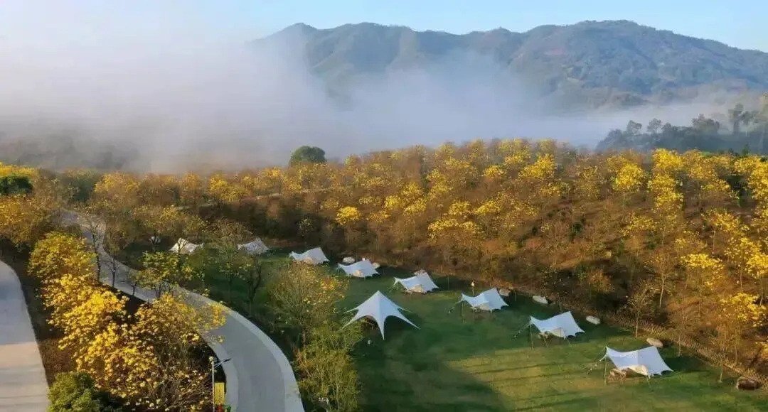 露营地坐落于黄花风铃木林中