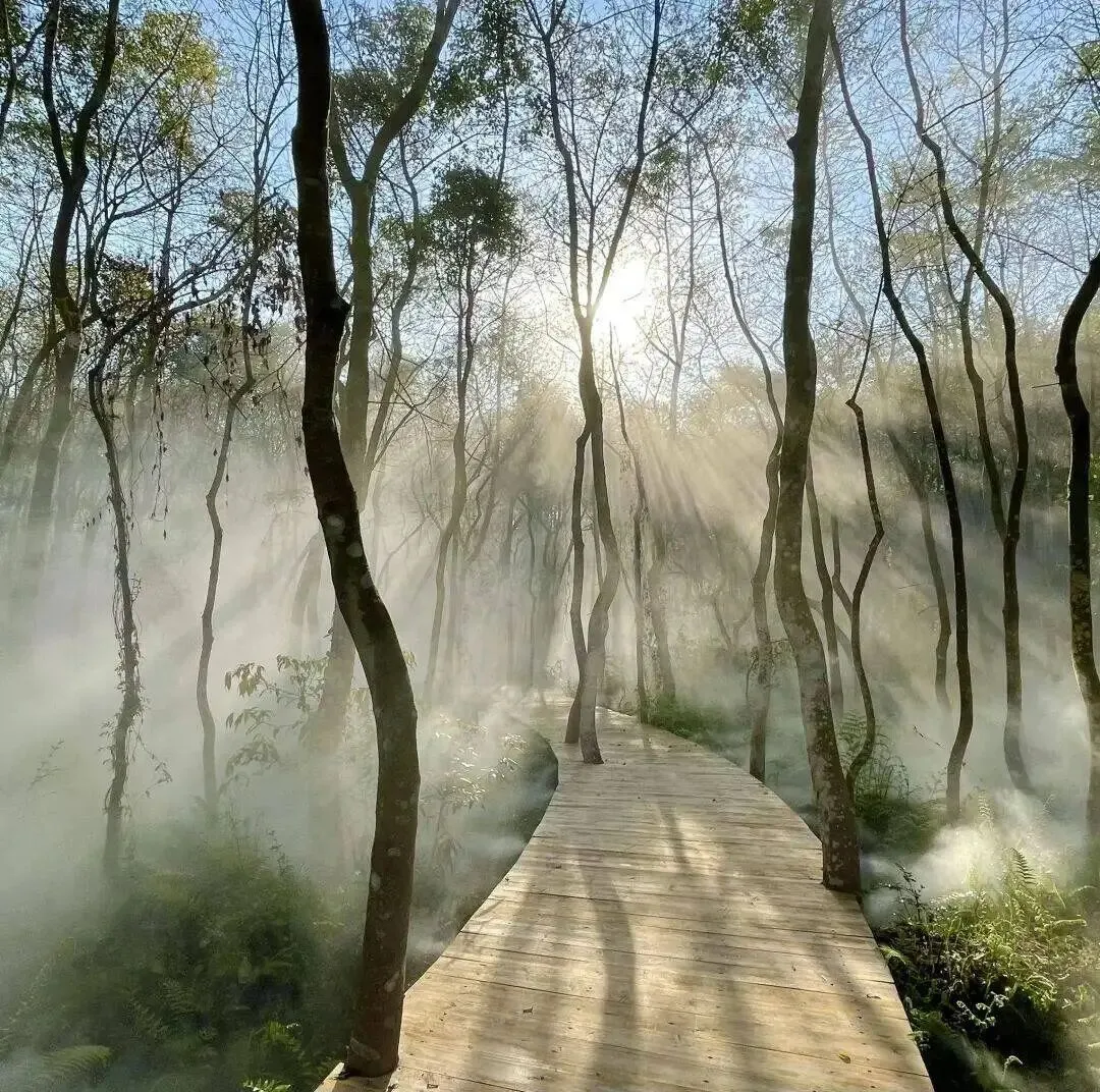 晨起推窗,雾霭轻抚生态林