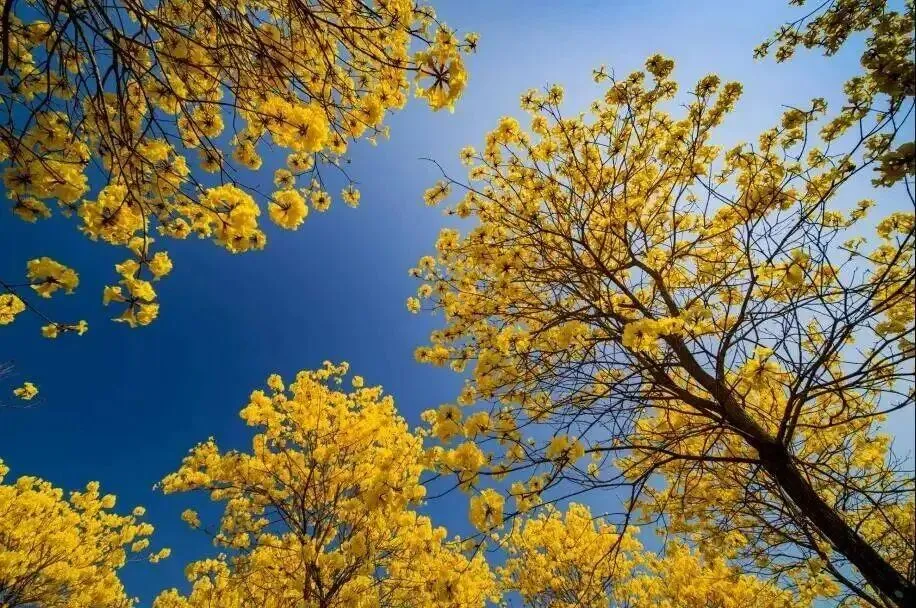 万株黄花风铃木在每年春季盛开