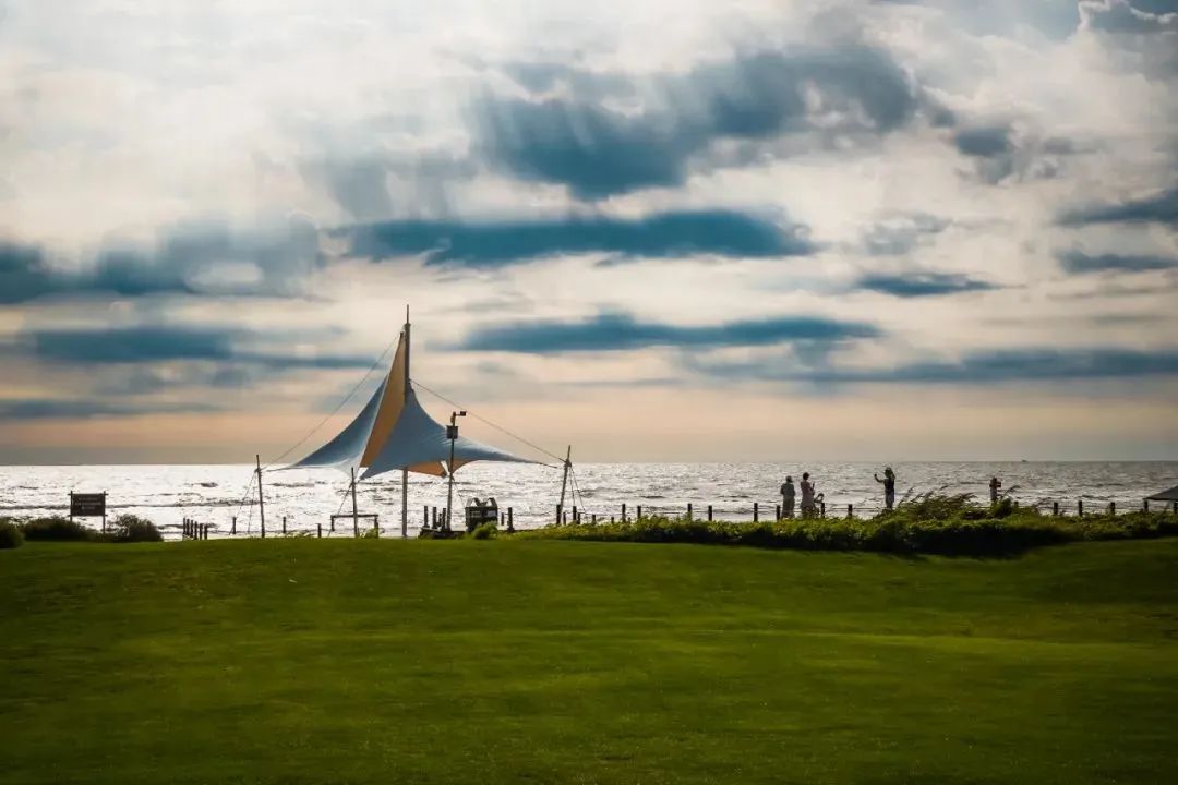 草地、沙滩、海水,行成鲜明的层次