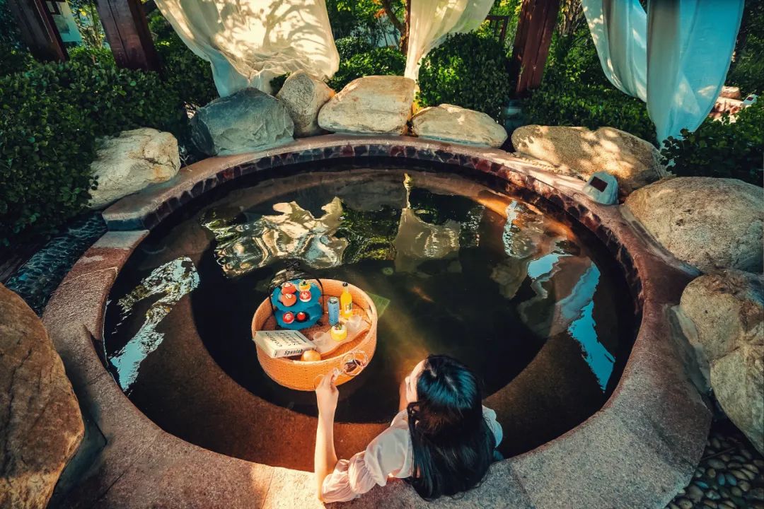 且不同功能的温泉泡池,