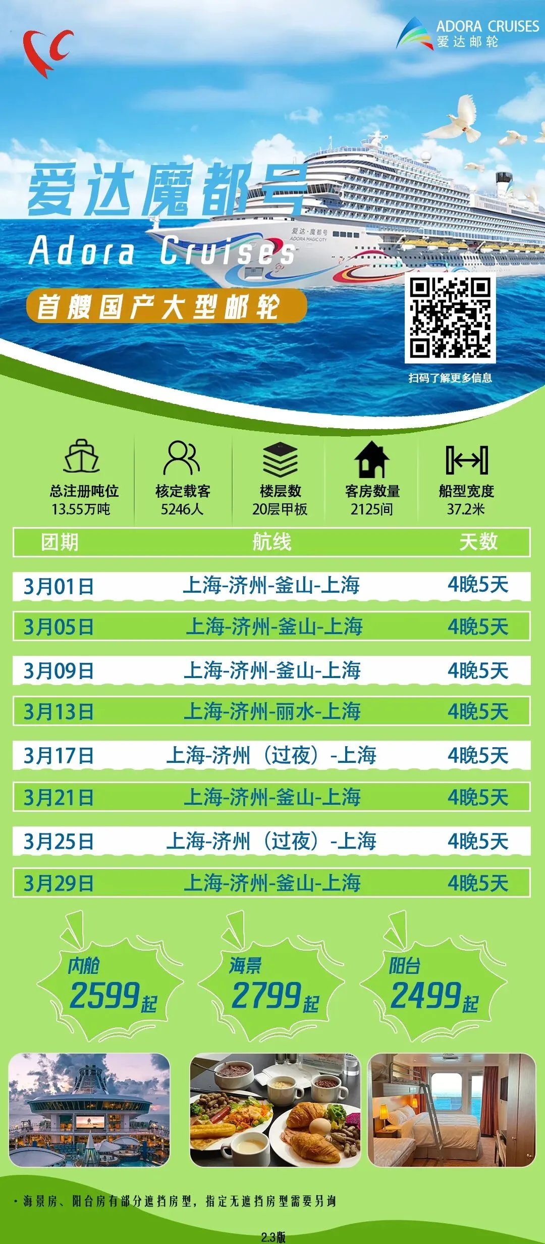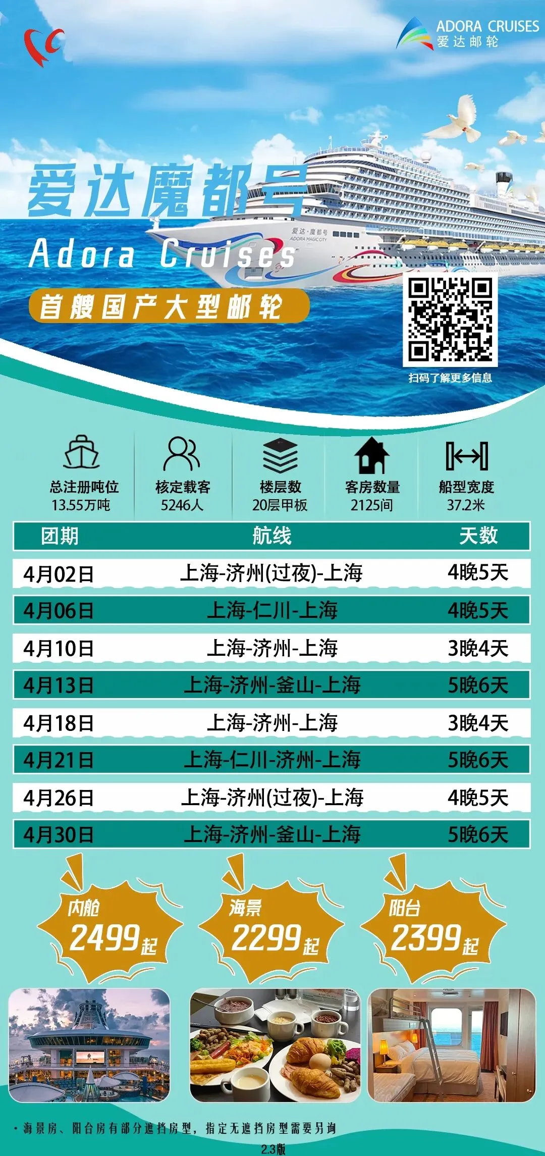 💰 内舱房8599元/人起,一价全含无隐形消费