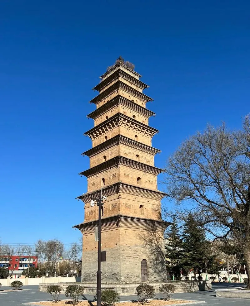 塔周围现在已经没有寺庙了,只剩下这座塔孤零零地站在那里,但你走近了会发现,塔身上有很多历代修缮留下的痕迹,有些砖是后来补上去的,釉色和原砖不一样,有些地方还能看到不同时期的题记,这些痕迹加在一起,让你能感受到这座塔是怎么在一代代人的维护下活到现在的,不是作为文物被保护起来,是作为一个地方的标志被守护下来。