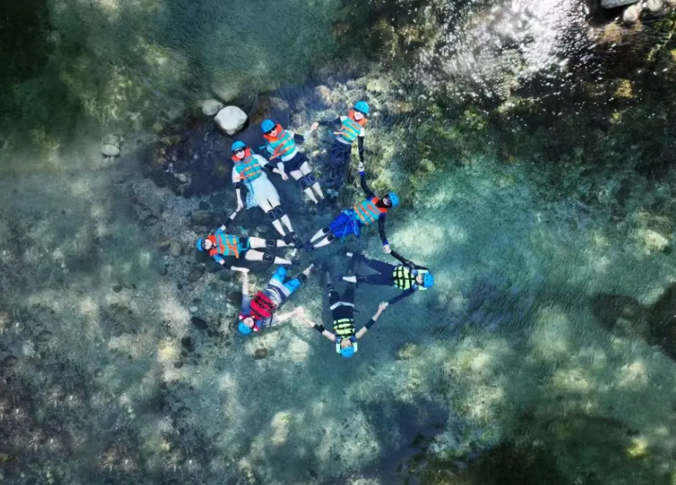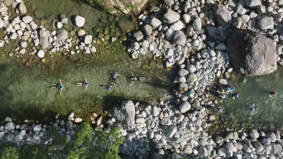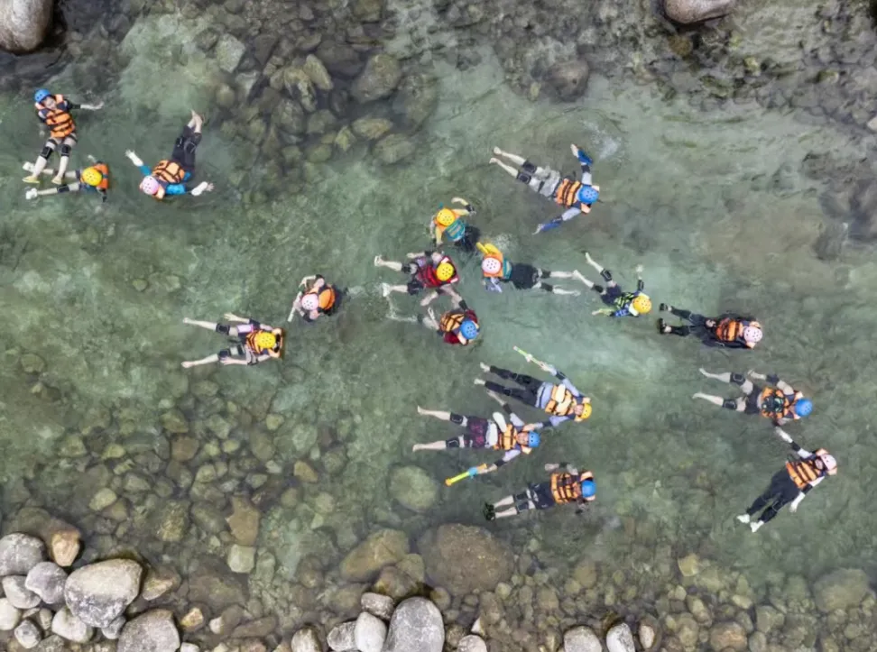 与传统漂流追求速度与刺激不同,窝囊漂倡导随性悠然。游客无需操控皮划艇,只需穿戴好简单护具,以“大”字形舒展身体,平躺在水流平缓的 600 米河段,便能顺流而下。这种方式让游客全身心贴近清澈的水流,感受水的轻抚,与大自然深度融合,带来前所未有的放松体验,无论是小孩还是老人,都能轻松参与。