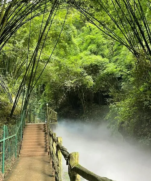 川西竹海是邛崃最大的竹林景区,走进去你会发现一个现象,就是竹子密到你看不到天。这种密度不是人工种出来的那种整齐划一的密,是野生的密,竹子长得高高低低,粗粗细细,挤在一起,阳光从竹叶的缝隙里漏下来,在地上形成一片一片的光斑。走在竹海里有种被包裹的感觉,四周全是竹子,风吹过来的时候竹林会发出嘎吱嘎吱的声音,那是竹子和竹子碰撞的声音。