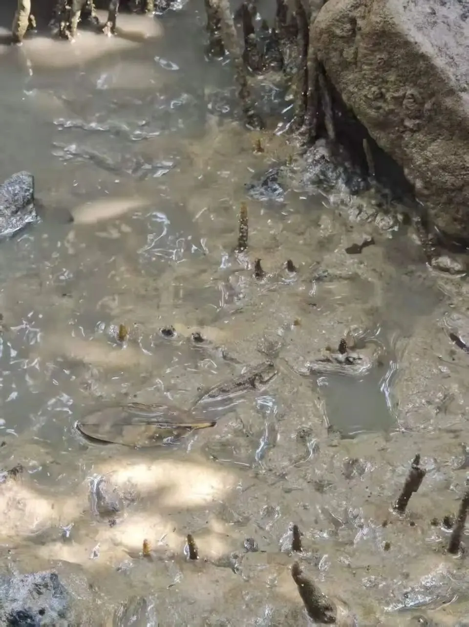 儿子到海边,此行目的之一便是看红树林、抓弹涂鱼。