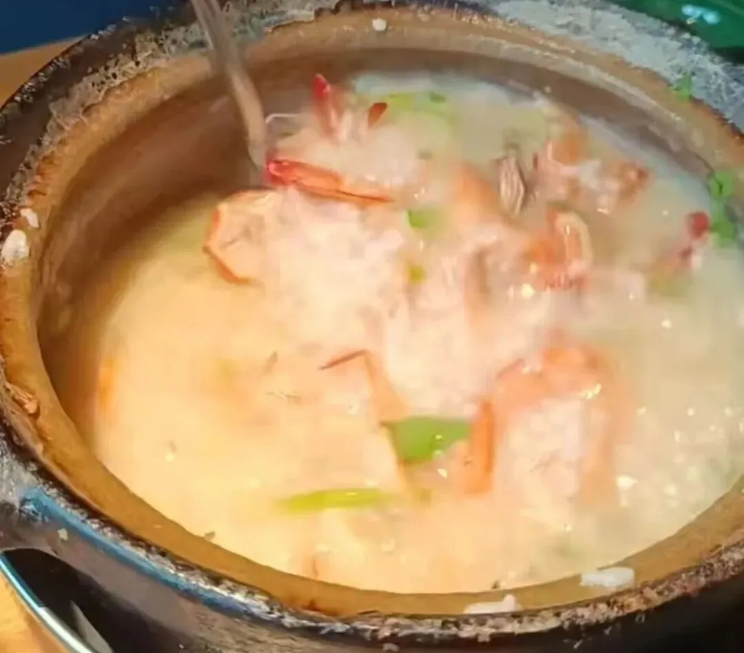 (顺德鱼皮这次是吃到饱了,味道不错,38元一份。) 我们一家饭量都很小,点三个菜那是绝对吃不完,经常打包当下午茶。 偶尔也会“奢侈”一把,也算此次行程“锦上添花”。 广东的粥很不错,粥底火锅因为排队太久而放弃。我们便去找了家煲仔粥品尝,2-3人一份海鲜粥,再加上两个小菜,一顿粥三个人330元,这也算此次出行“餐饮界”最高消费了。