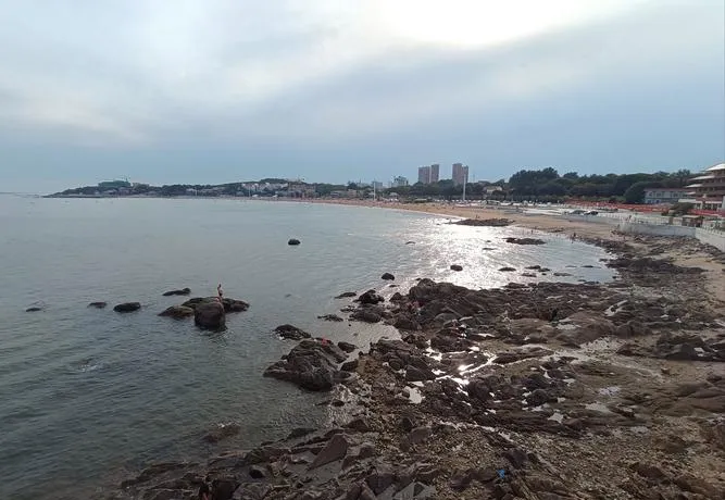 海兴的海滨浴场和南方那些海滩完全不是一回事,这里的沙子是黄褐色的,海水不算清澈,沙滩也不够细腻,但你在这待一会儿就会发现,这个地方让人重新理解了什么叫真实的海边生活。这里不是度假胜地,是当地人真在用的海滩,你能看到大爷大妈在海边散步,小孩在沙滩上挖坑,年轻人支个帐篷坐着发呆,没有商业化的痕迹,没有密集的遮阳伞和收费项目,就是一片海滩开放在那,你想来就来。