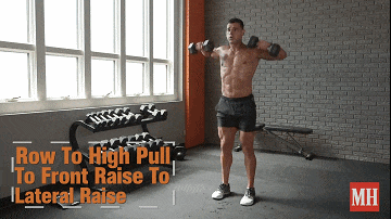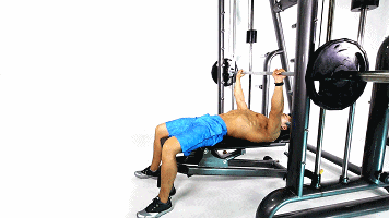 第一组动作:史密斯卧推 + 高位下拉 + 哑铃前平举和侧平举