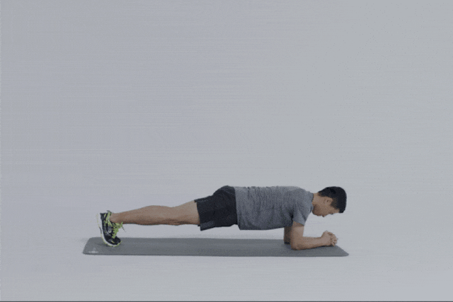 第四组动作:器械卷腹15~20次 + 悬垂举腿10~15次 + 平板支撑40秒~1分钟