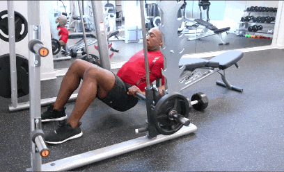 第二组动作:杠铃臀冲 + 器械举腿 + 单腿小腿提踵