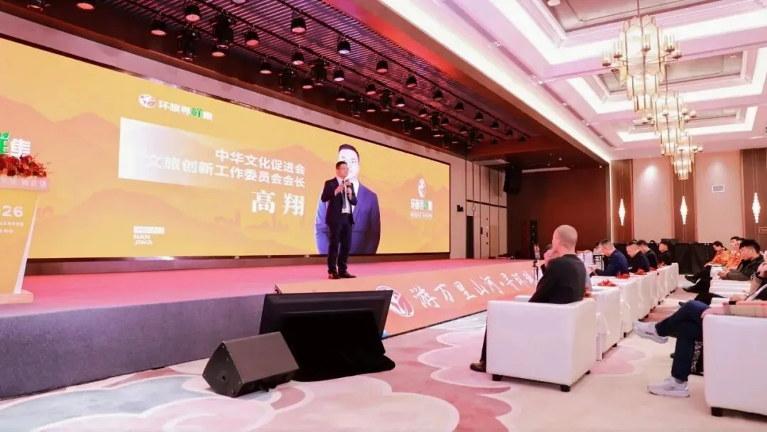 中华文化促进会文旅创新工作委员会会长高翔率先登台致辞。高会长深耕文旅领域多年,对行业发展趋势有着深刻洞察。他表示,文旅产业是推动经济发展的重要力量,也是传承文化、连接世界的桥梁,而中华文化促进会文旅创新工作委员会始终致力于推动文旅行业的创新与发展。对于环旅寻鲜集的品牌创立,高会长给予了高度肯定,他期待环旅寻鲜集能以创新模式为文旅行业注入新活力,在文旅赛道上绽放独特光彩。