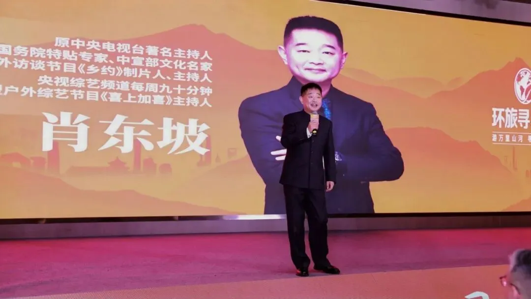 原中央电视台著名主持人、国务院特贴专家、中宣部文化名家肖东坡先生的登场,将现场氛围推向新高。作为央视《乡约》《喜上加喜》等经典节目的主创者,肖老师深耕媒体与文旅融合领域多年,他分享了自己对文旅产业创新发展的独家见解,高度认可环旅寻鲜集 “旅游 + 寻鲜” 的品牌理念。肖老师表示,文旅产业的发展需要创新思维与资源融合,而环旅寻鲜集精准契合了当下消费者对高品质文旅生活的追求,未来发展潜力无限。