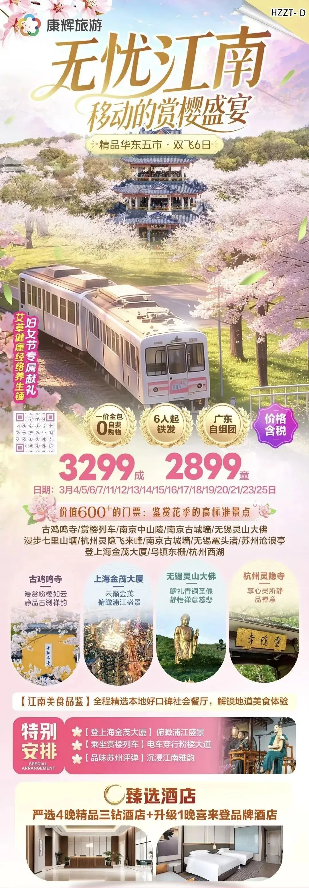 ✅ 特色亮点:0 自费 0 购物,乘樱花专列穿行粉樱隧道,静听苏州评弹🎶