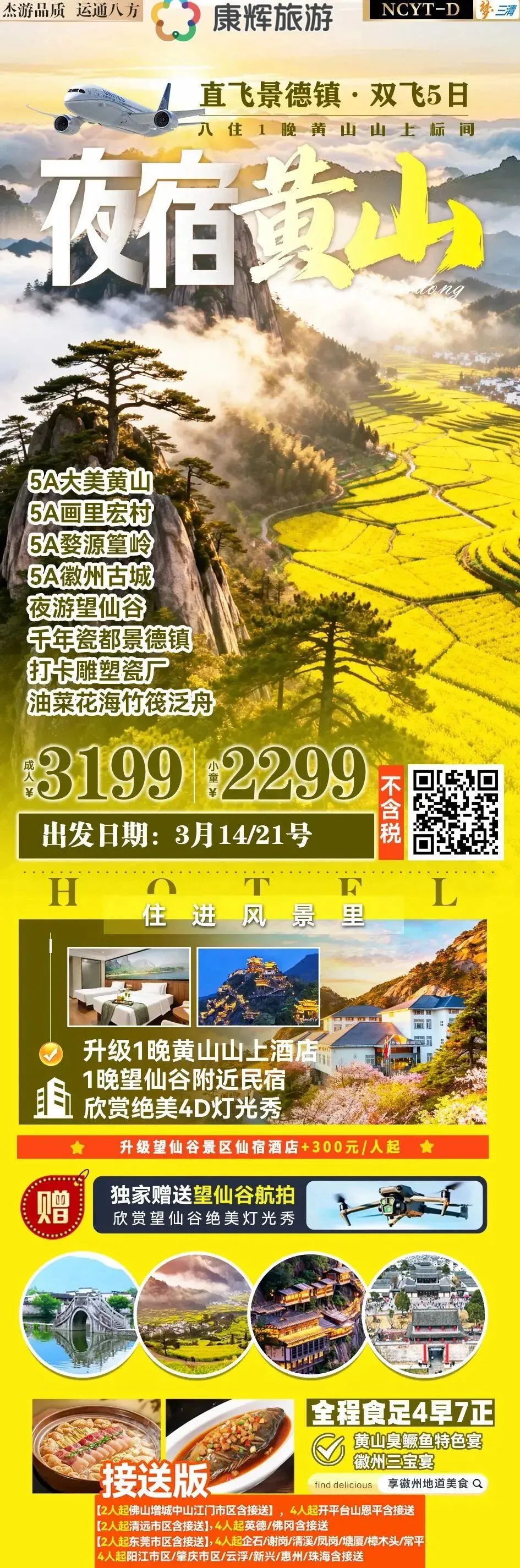 ✅ 0 购物,住 1 晚黄山山上标间 + 1 晚望仙谷民宿,赠送望仙谷航拍