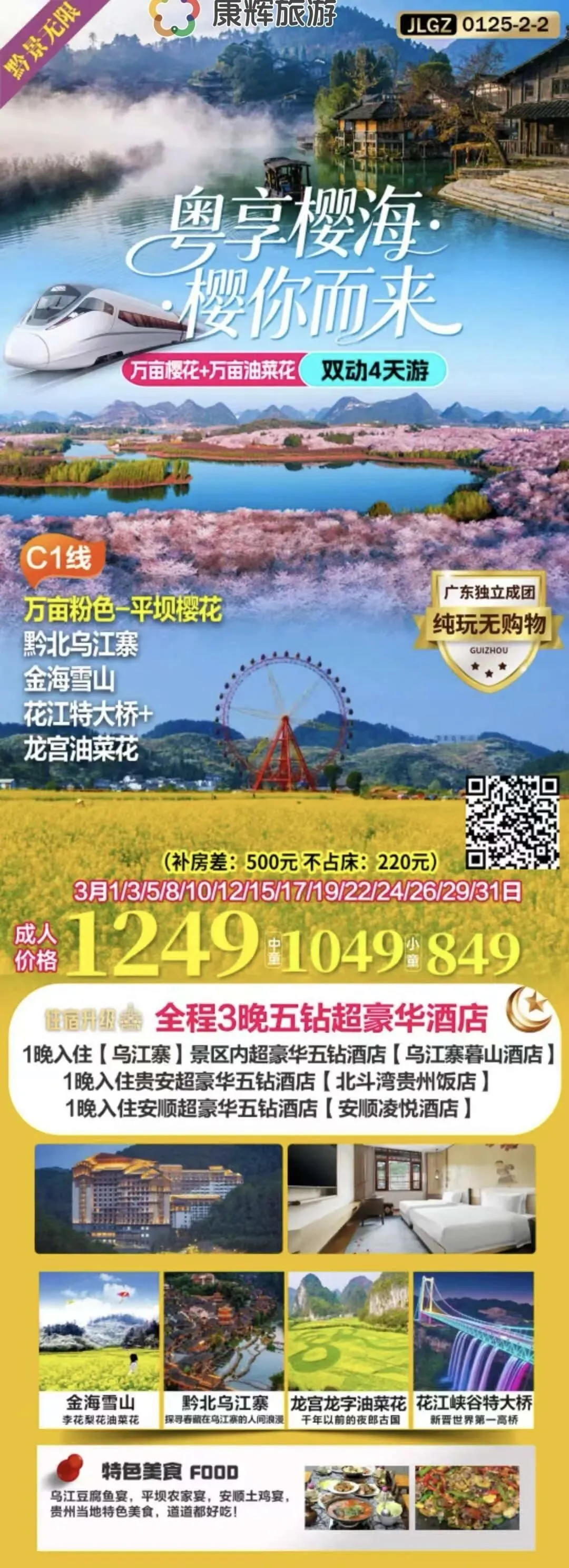 【粤享樱海】平坝万亩樱花园双动 4 日