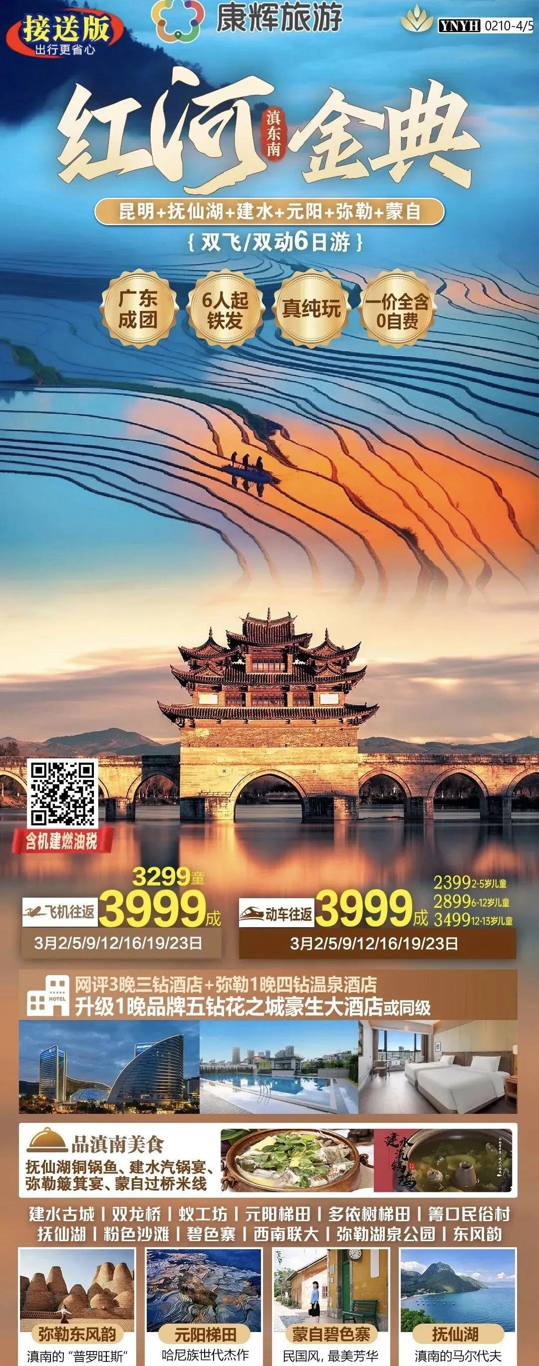 ✅ 真纯玩 1 价全含,弥勒 1 晚四钻温泉酒店 + 昆明五钻豪生酒店