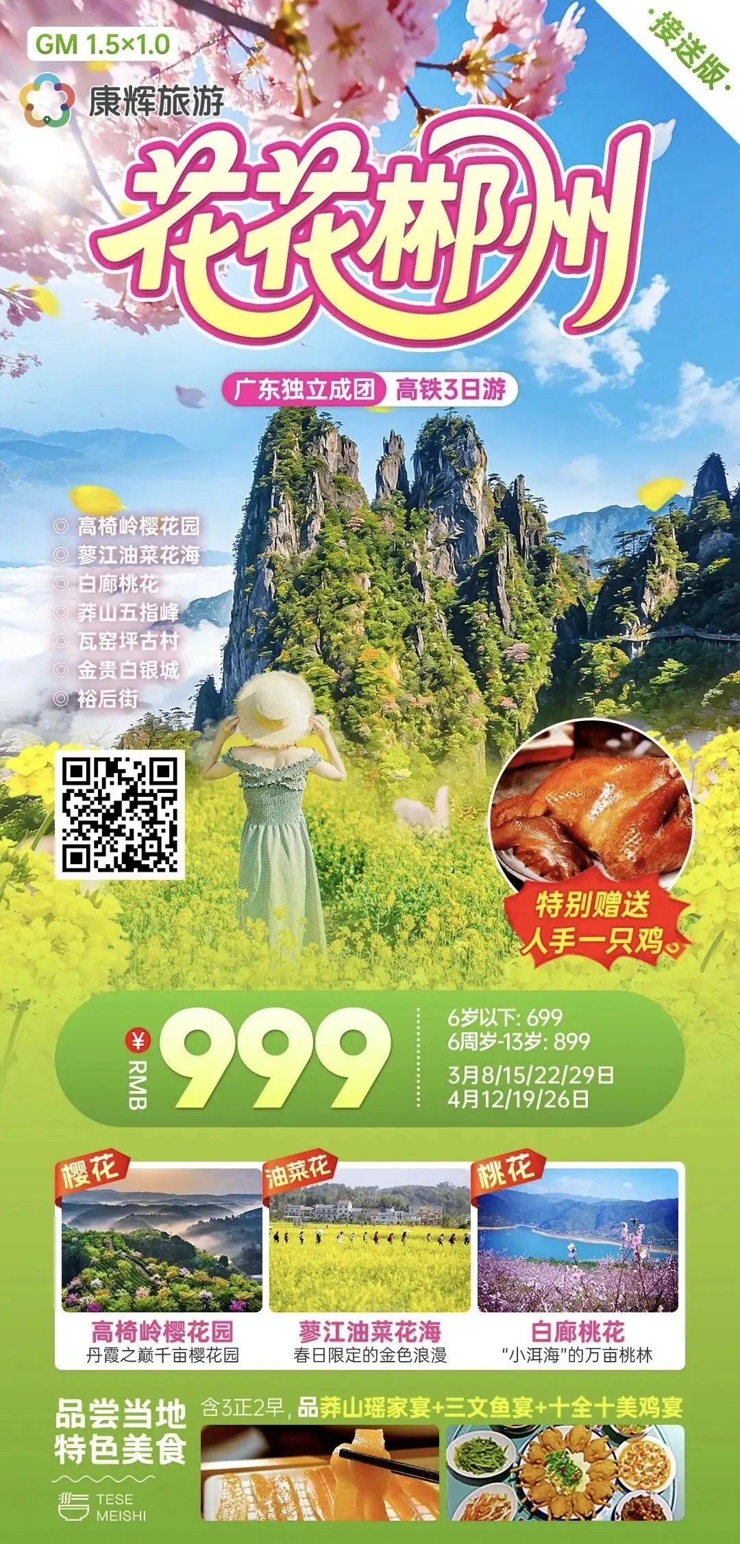 🌸 高椅岭樱花园、蓼江油菜花海、白廊桃花,三色花海齐绽放🚄