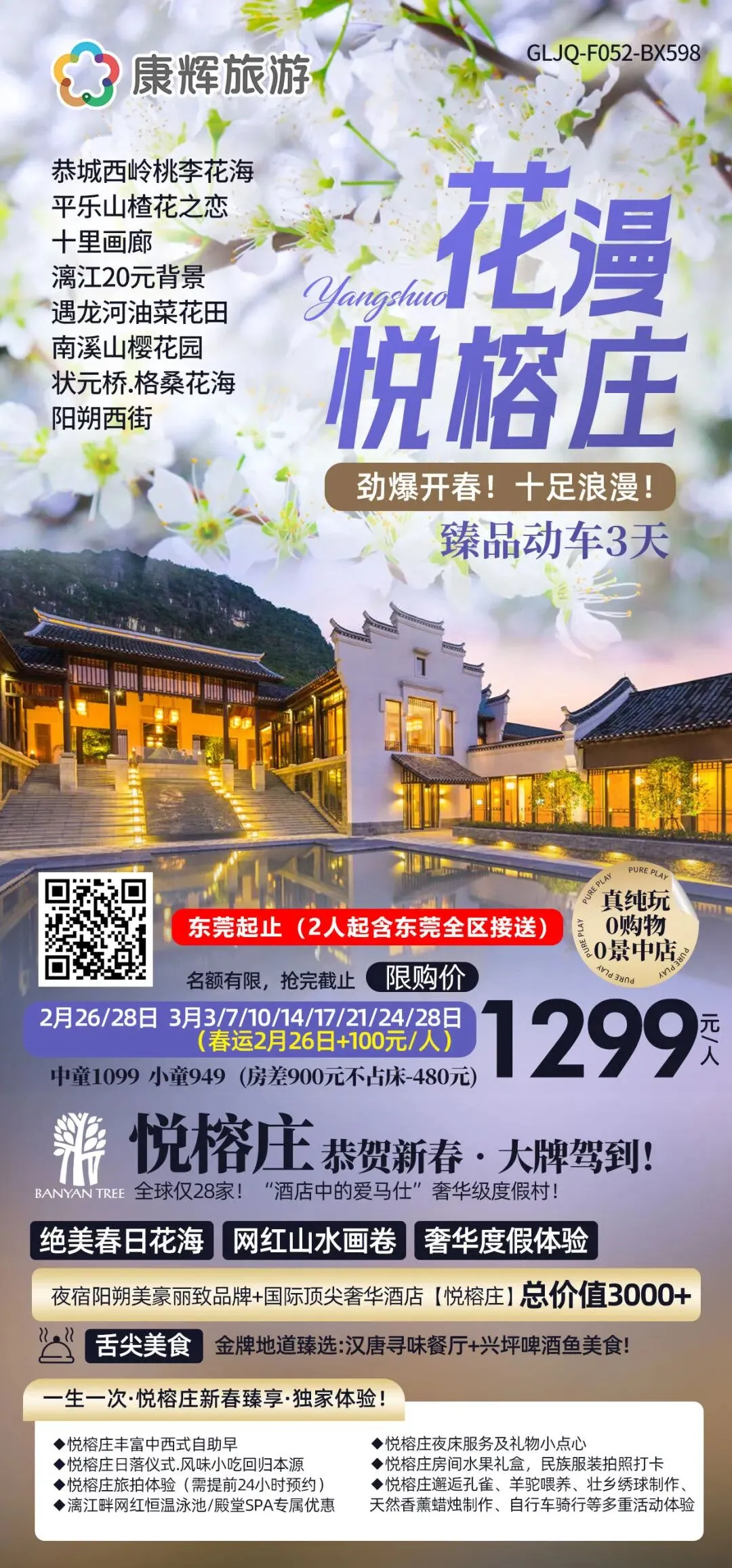 🌼 恭城西岭桃李花海、平乐山楂花林、遇龙河油菜花田,一路繁花相伴