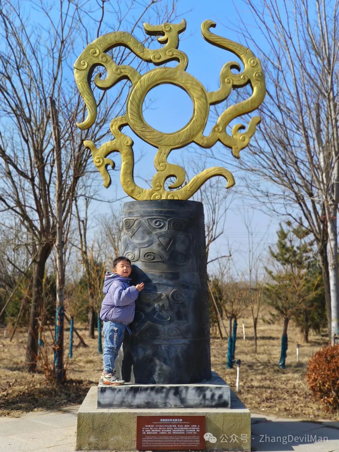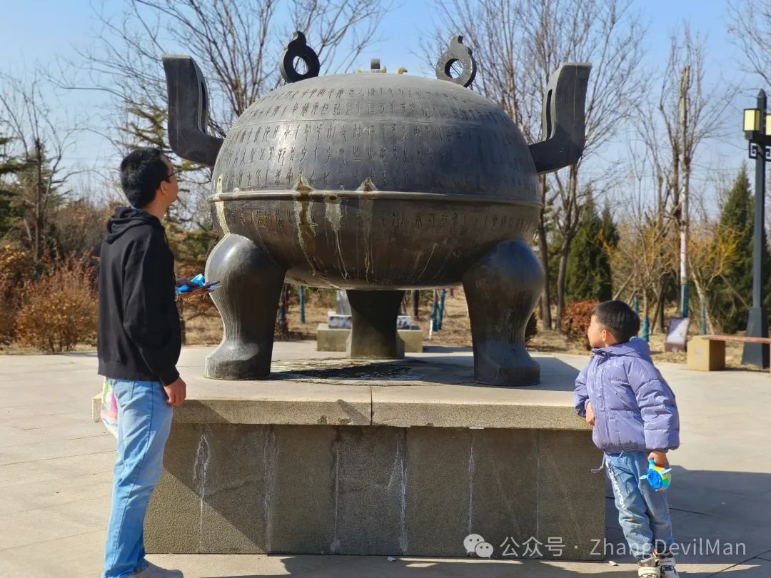 进入园区之后,首先映入眼帘的是“中山三器”之一的铁足铜鼎,其身所刻文字揭开了中山国神秘面纱。铜鼎之后,为夔龙黄玉佩雕塑。