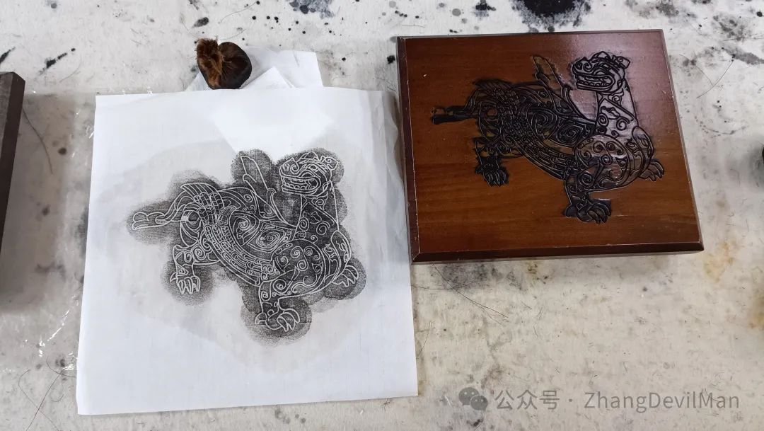 购买的门票中,还赠送了文创体验券,我借机制作了双翼神兽的拓版。
