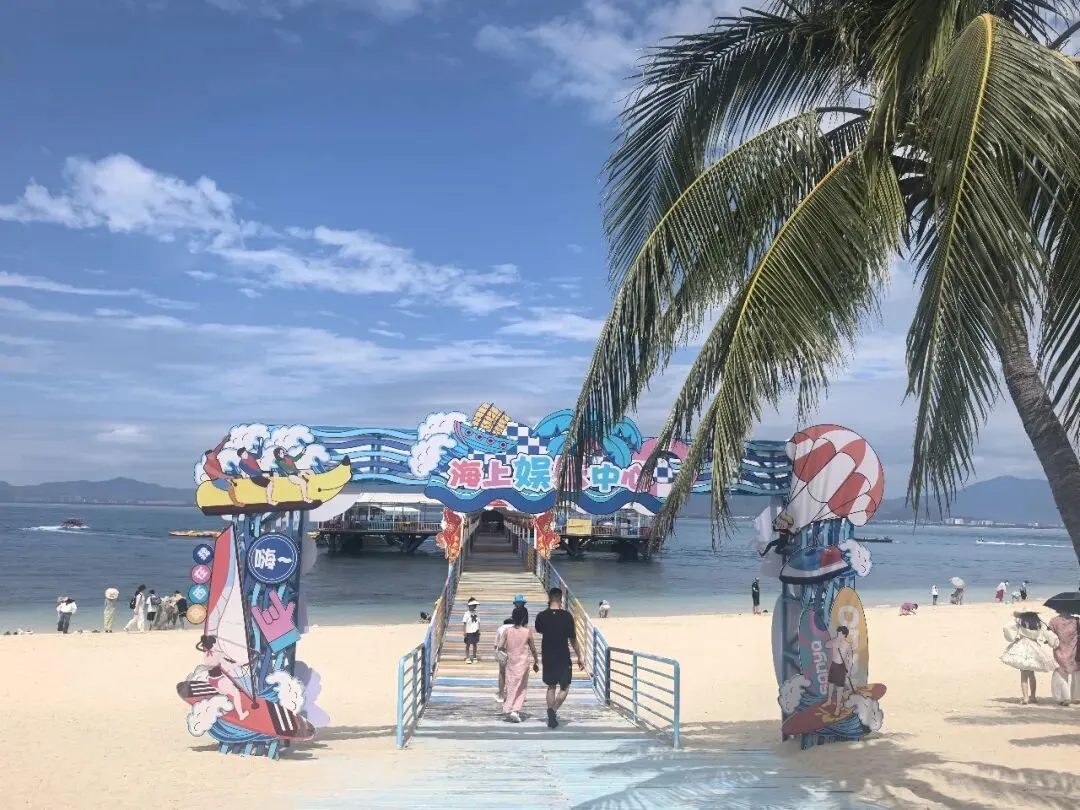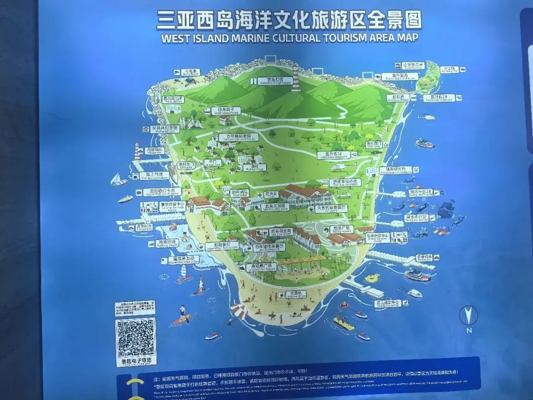 到西岛游客中心,就有个咨询台,西岛官方推荐各种水上项目及办理表格的人。我和NEVER稍稍做了一下挑选,他决定去玩一下潜水,398元潜水套票,包含上岛的门票和船票(潜水官方价格是380元/人)。 2012年我曾去过泰国普吉岛,当时自己还很有兴致玩水上娱乐项目,14年后的今天,50+的我对潜水、潜伏、空中飞行一点都不感冒。 因为手里有了填写好的潜水表格,我们被引领到一个没有人排队的售票处(其他只买门票船票的人排出长龙队)。因为我是新海南人,拿身份证购票居然只花80元(节省18元)。我“毅然决然“地把抖音的票退掉,因为现场买比平台更省钱。 10点半登船,船上的座位很软,相比较轮渡的座位舒服很多,大概半个多小时后我们下船登岛。 2024年那年来三亚过春节,当时因为游客太多,据报道说蜈支洲岛很多人根本上不去岛。