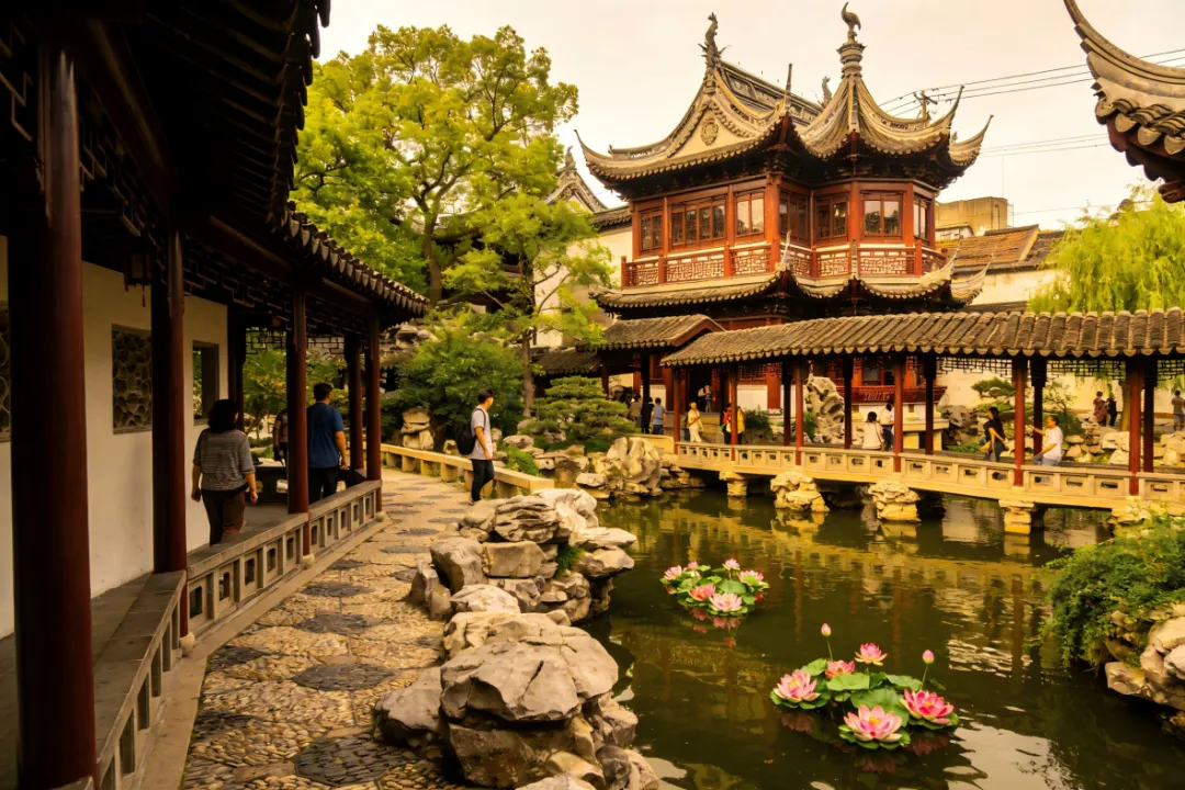 推荐理由:豫园是一座具有400年历史的江南园林,园内亭台楼阁、假山池塘错落有致,充满了古典韵味。